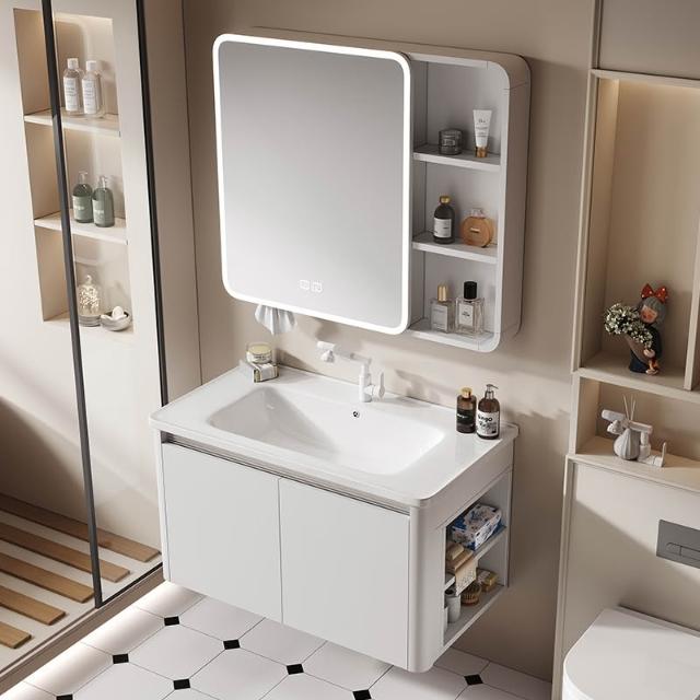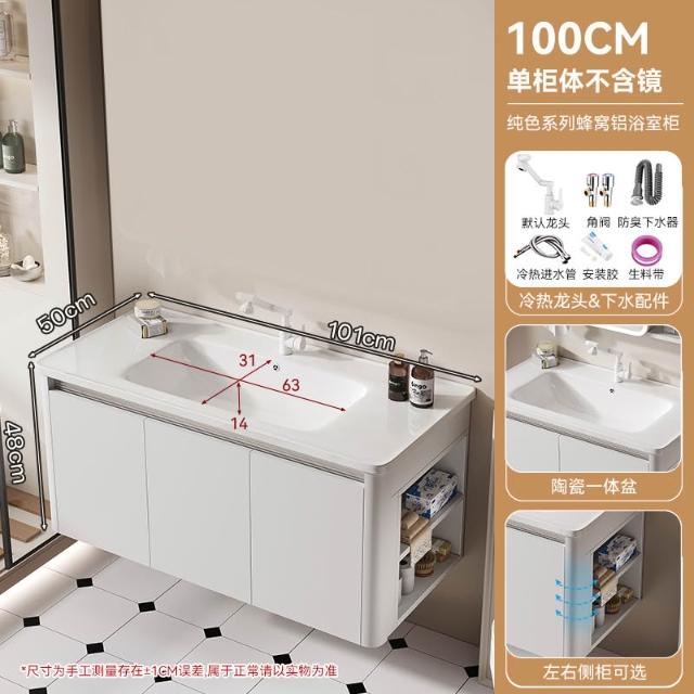 鋁蜂窩浴室櫃帶側櫃收納圓弧擋水陶瓷一體洗臉盆 MLDD260103YY