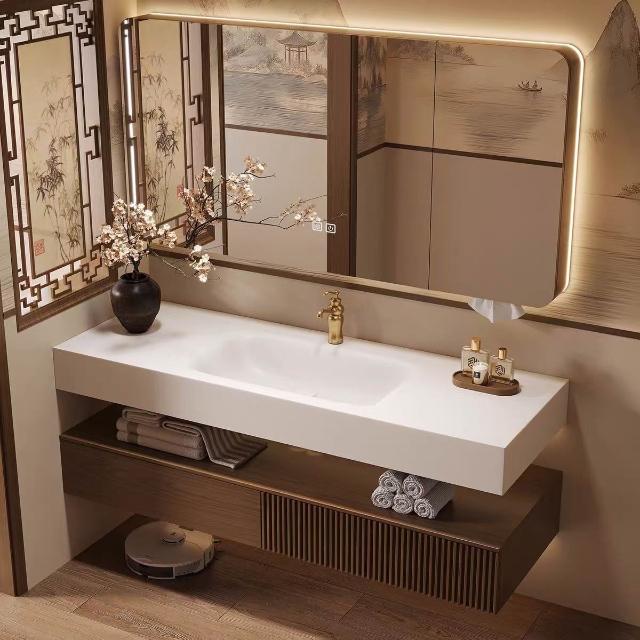 宋氏美學新中式橡木浴室櫃組合衛生間巖板陶瓷一體盆洗手臉盆衛浴 MLDD260103YY