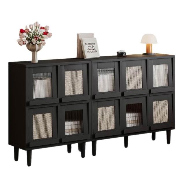 實木書櫃落地置物櫃儲物櫃客廳收納櫃餐邊黑色格子櫃翻門書架 MLDD260108YYSG