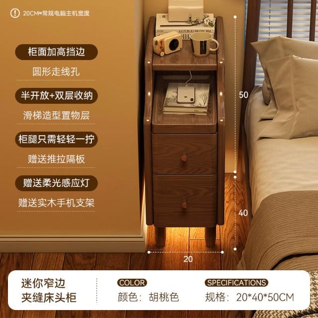 實木床頭櫃小型超窄置物架家用臥室床邊20cm夾縫極窄收納櫃替代品 MLDD260108YYC