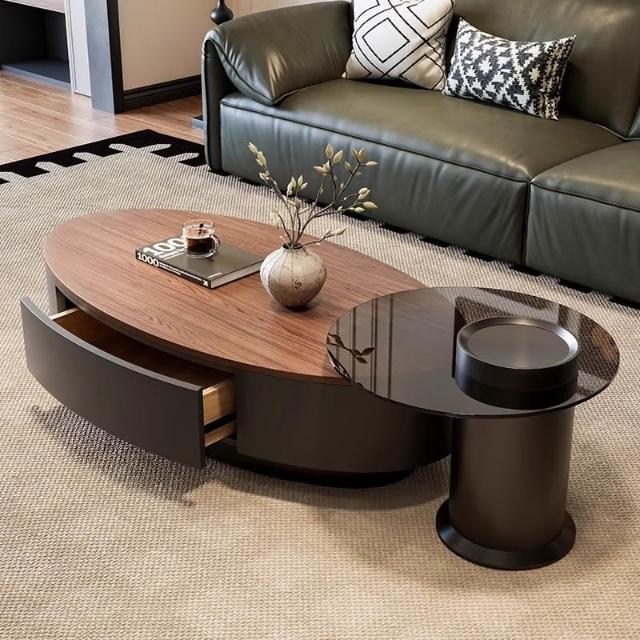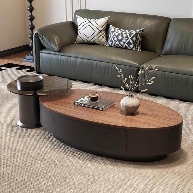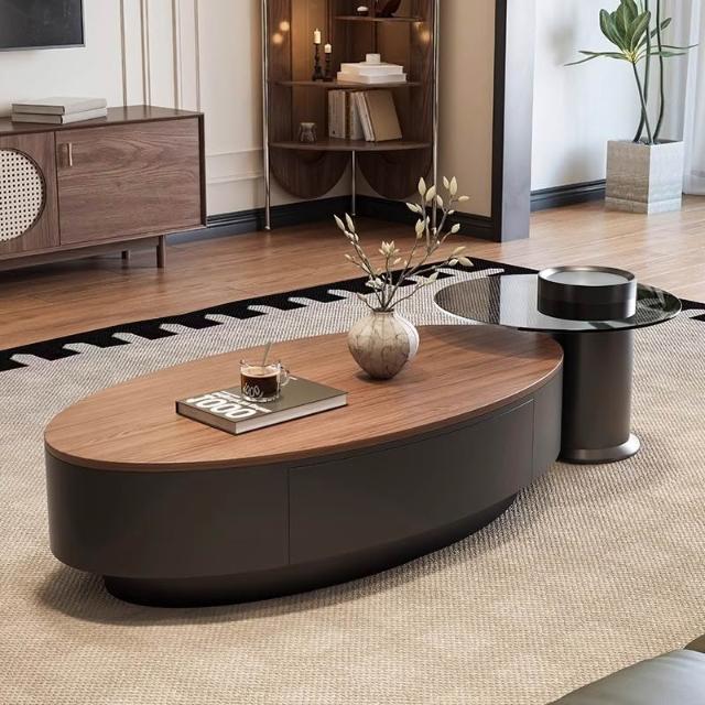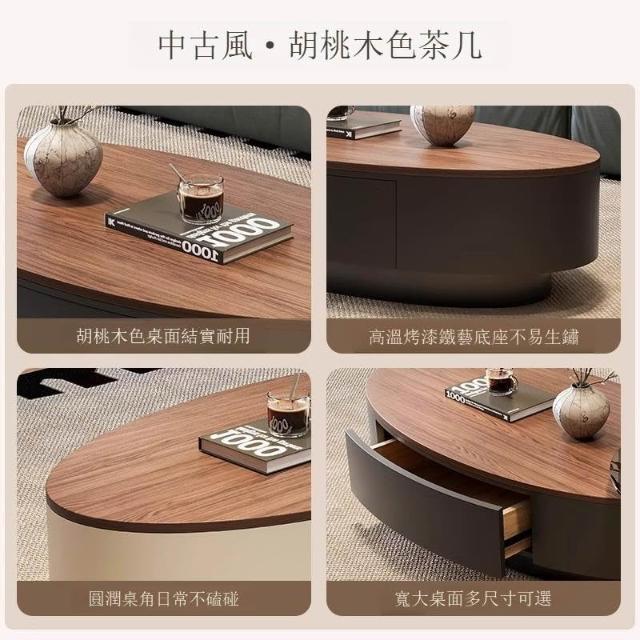 中古奶油風橢圓茶幾桌組合輕奢高級感客廳家用小戶型茶臺復古極簡 MMLD0303SFF