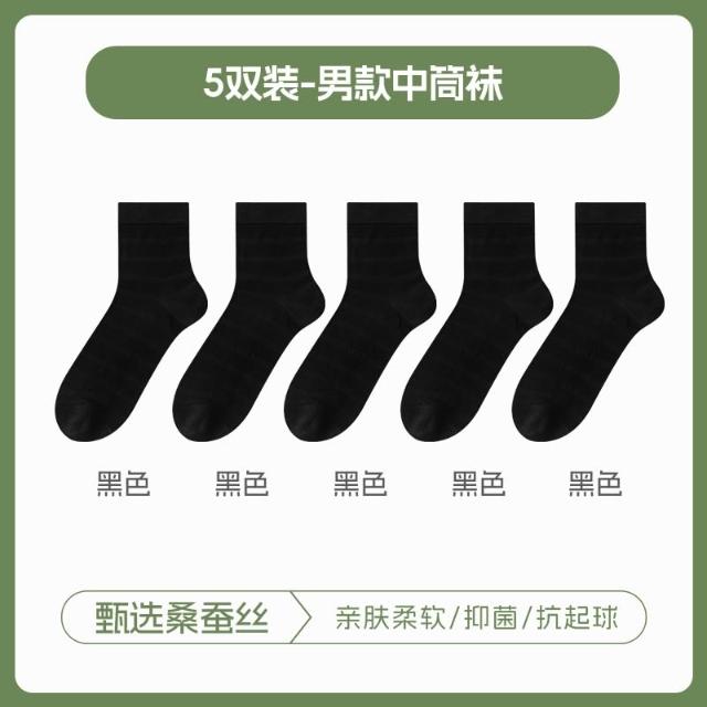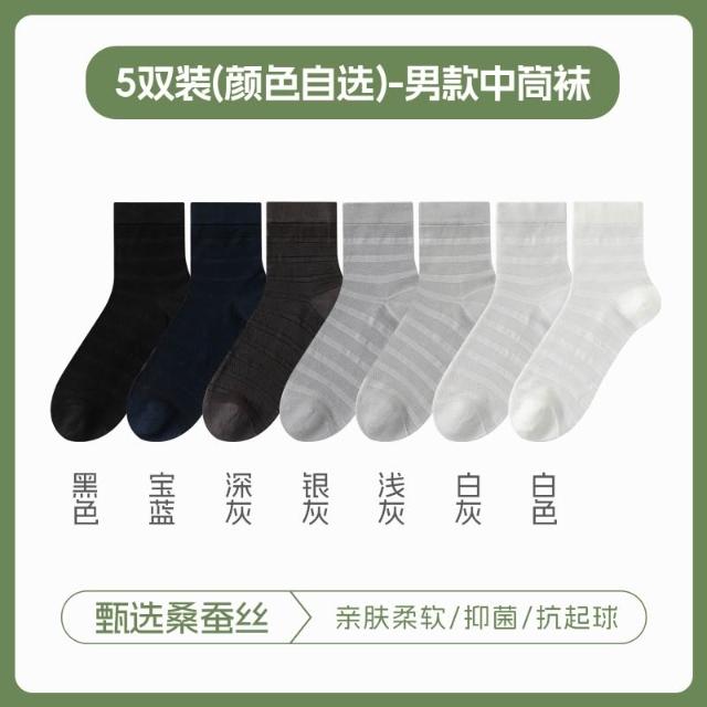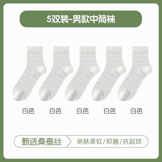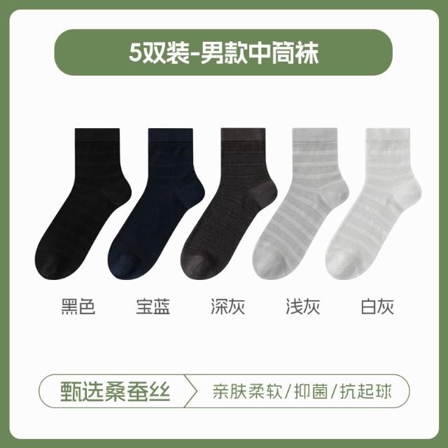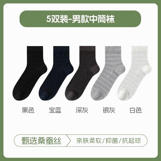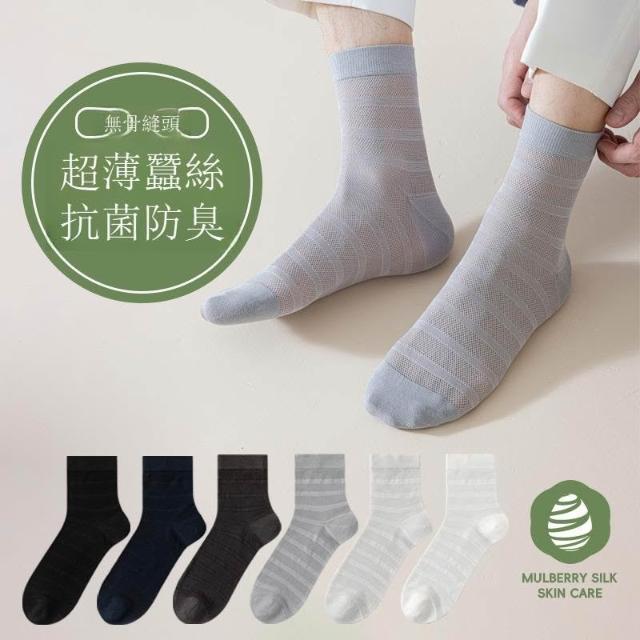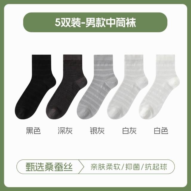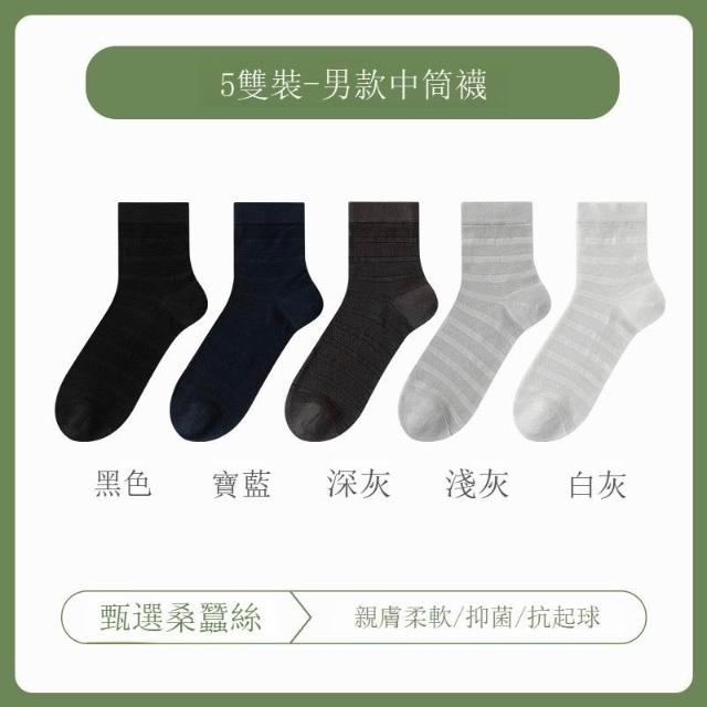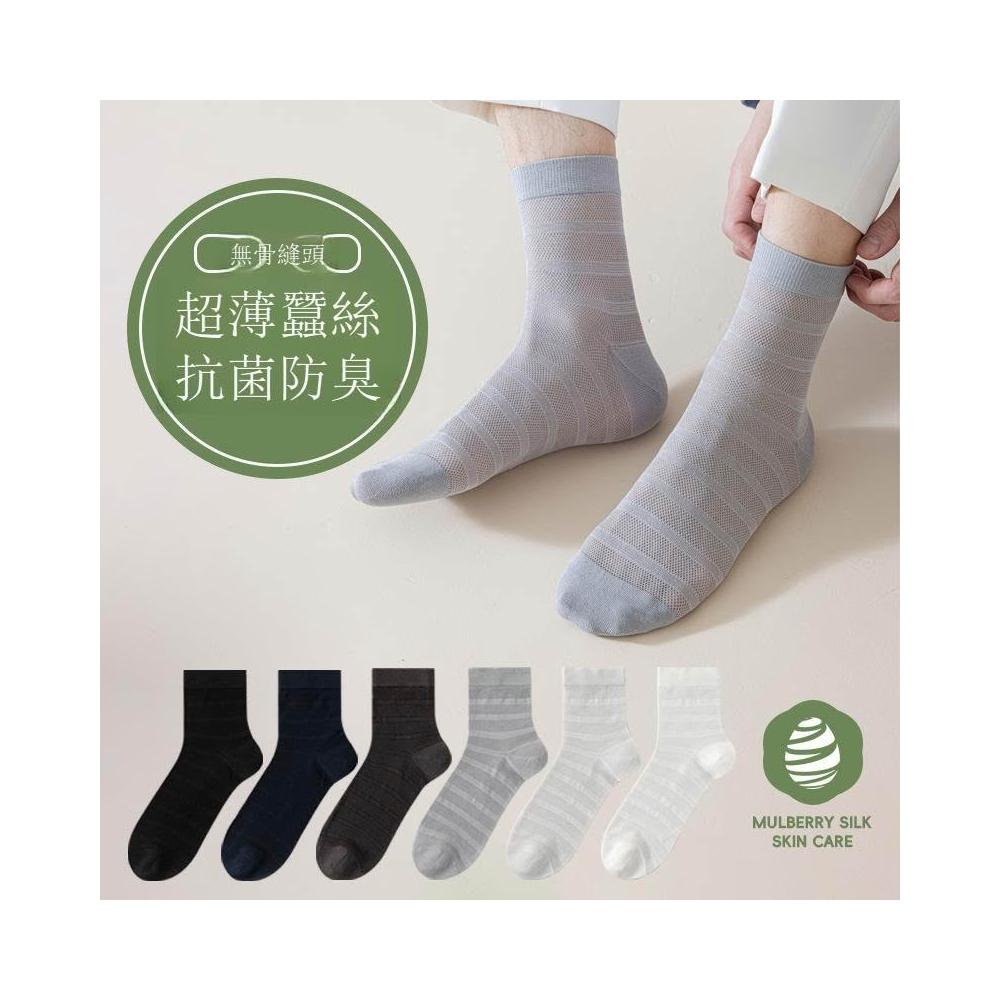 夏季襪子男桑蠶絲超薄中筒襪透氣網眼男士無骨抗菌長襪商務高幫襪 MMLD0304WZ【五雙裝】