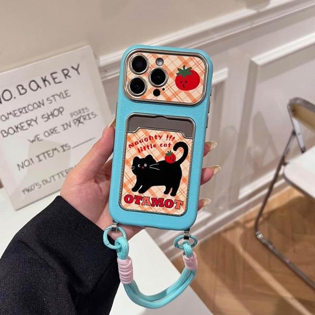 黑貓番茄適用蘋果17防摔手機殼掛繩卡包大視窗貼皮iPhone16保護套 MMLD0305SJ