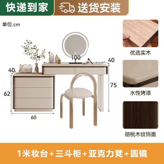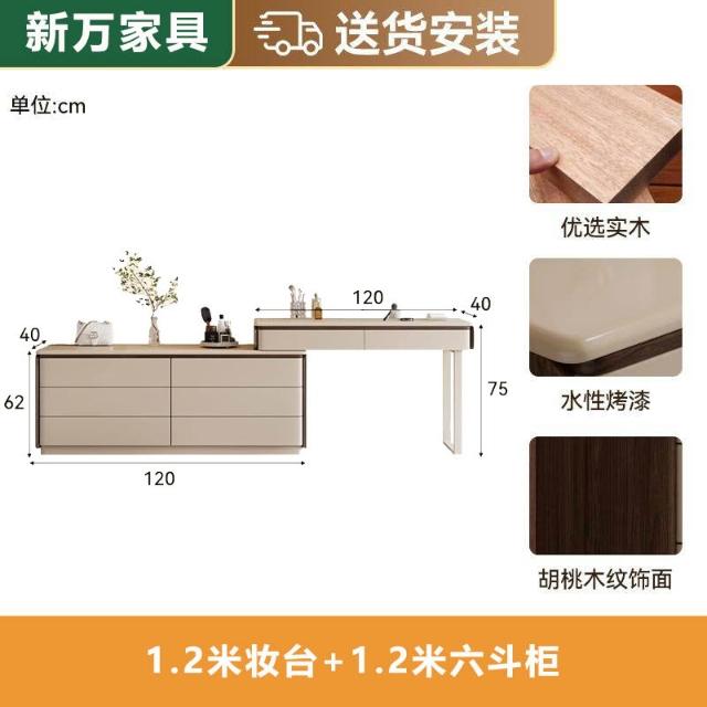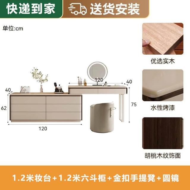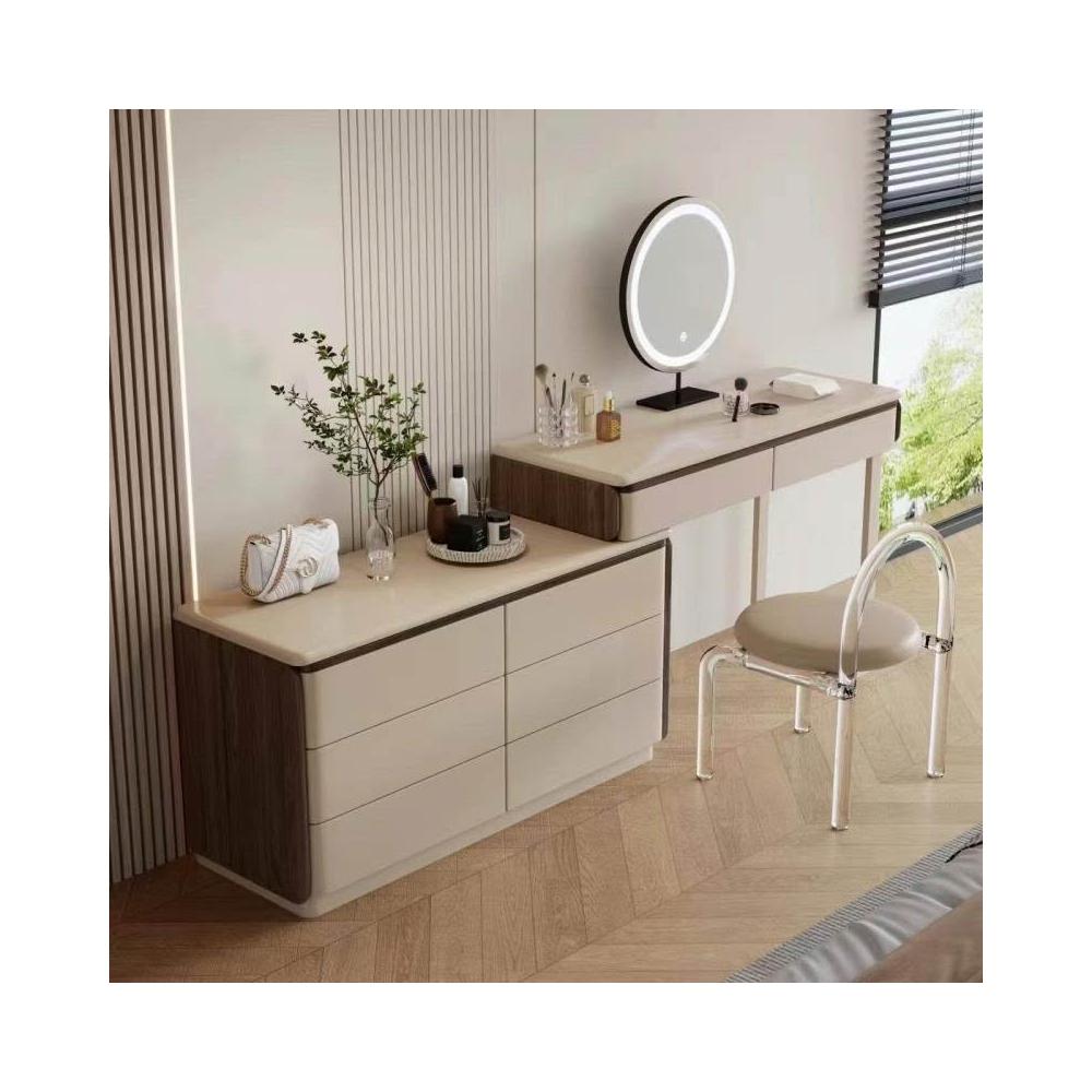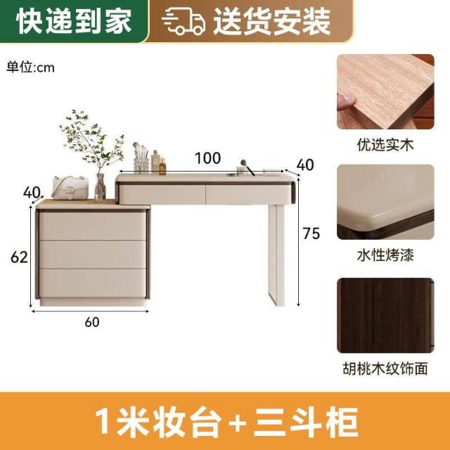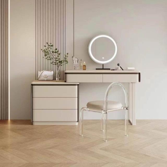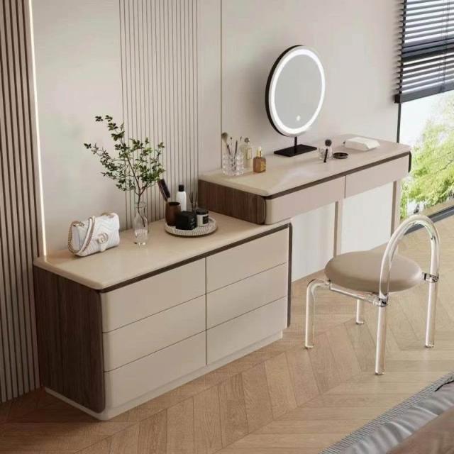 實木梳妝臺斗柜一體臥室現代簡約高級感可轉角寫字臺收納柜化妝桌 MMLD0311YYT