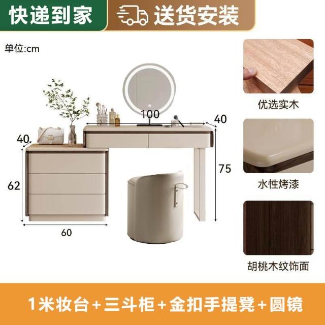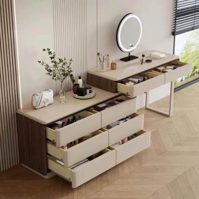 實木梳妝臺斗柜一體臥室現代簡約高級感可轉角寫字臺收納柜化妝桌 MMLD0311YYT