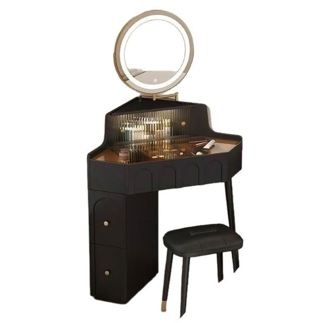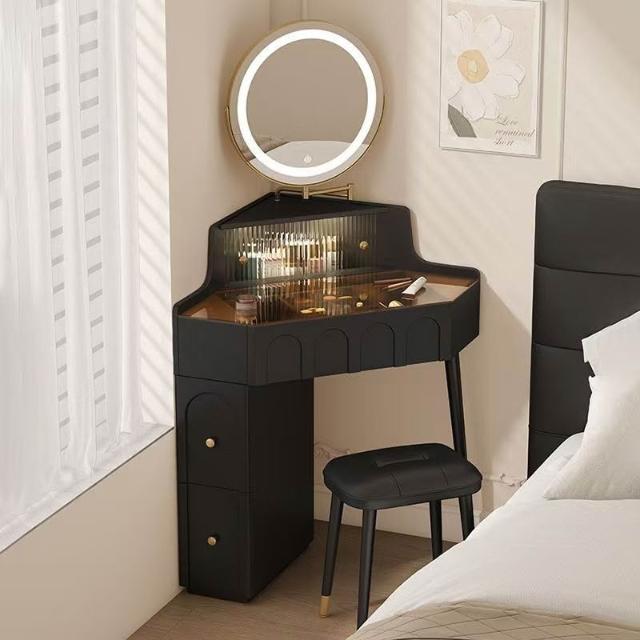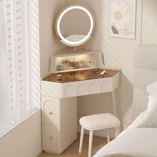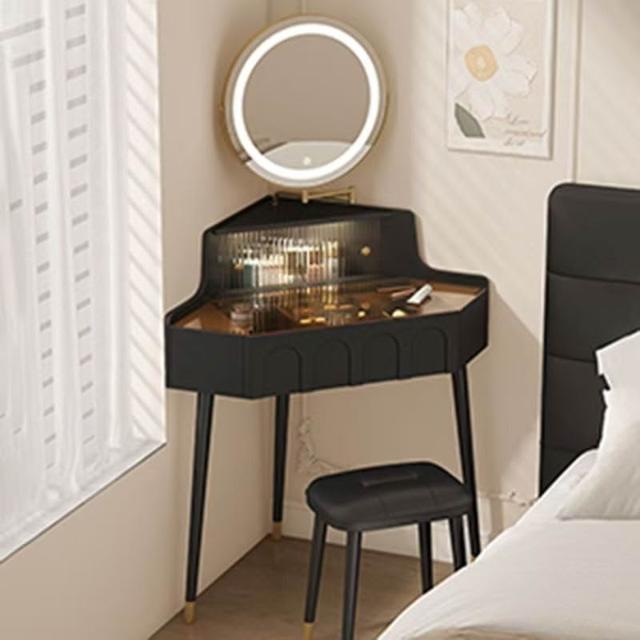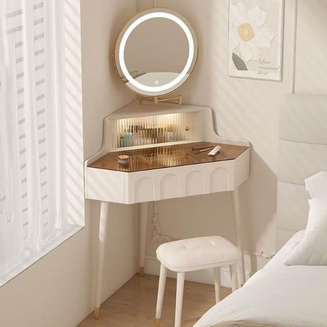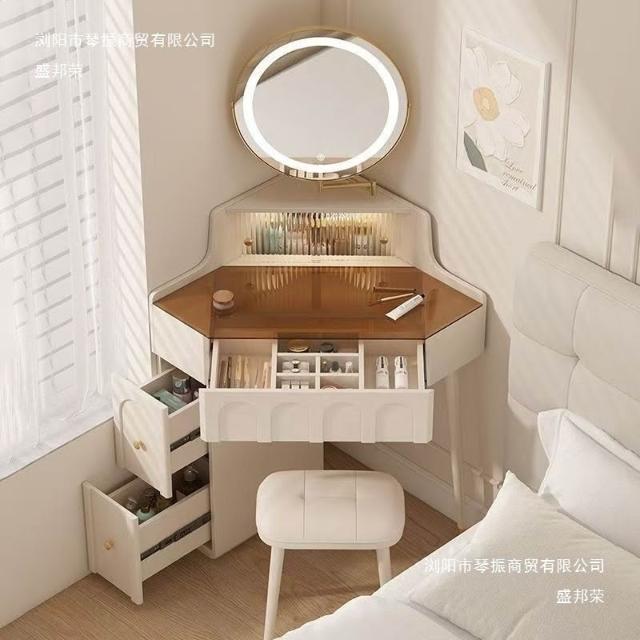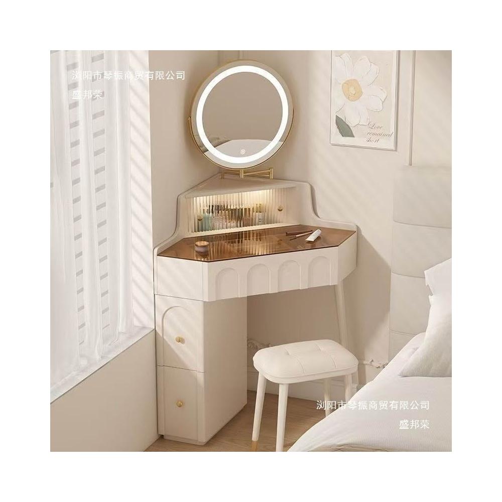 實木小戶型拐角梳妝臺臥室家用墻角化妝桌帶化妝鏡轉角床頭柜一體 MMLD0311YYT