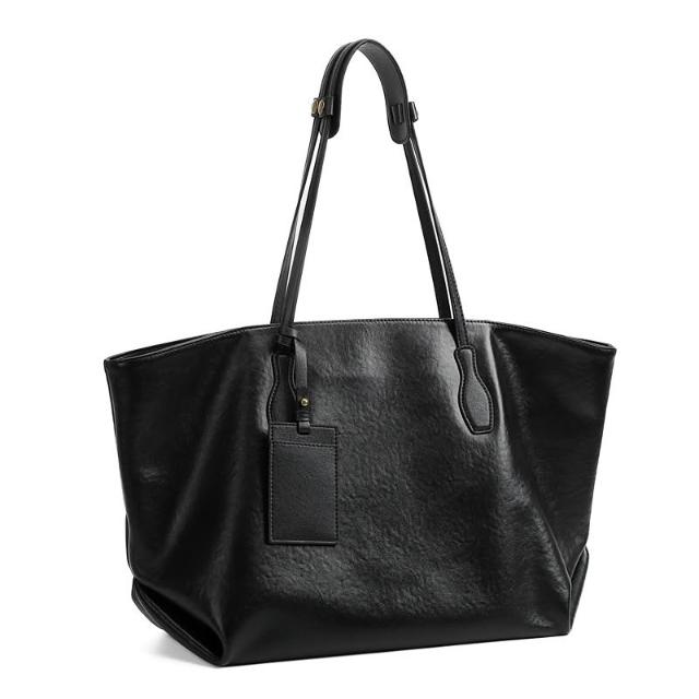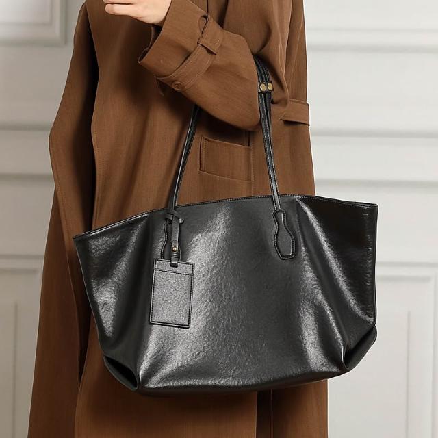 頭層植鞣真皮小眾大容量托特包女高級質感通勤單肩包大包 小眾包包YY