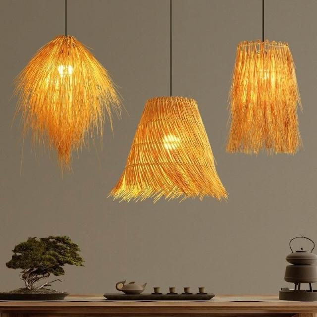 創意毛草吊燈 藤編竹編藝術草帽燈 �nullptrレストラン民宿 MLDD0313YY