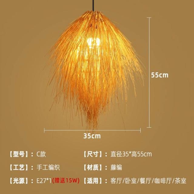 創意毛草吊燈 藤編竹編藝術草帽燈 �nullptrレストラン民宿 MLDD0313YY