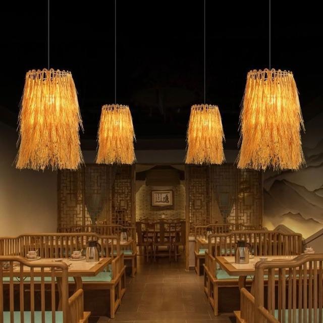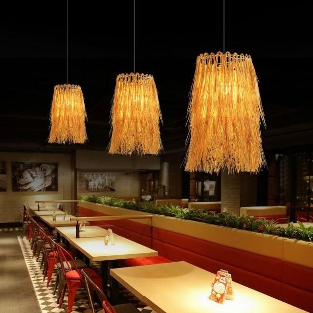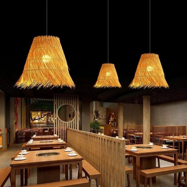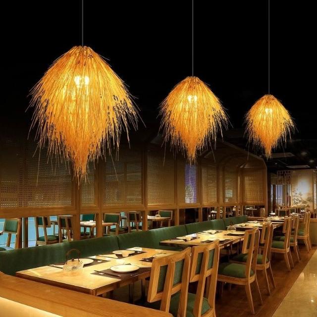 創意毛草吊燈 藤編竹編藝術草帽燈 �nullptrレストラン民宿 MLDD0313YY