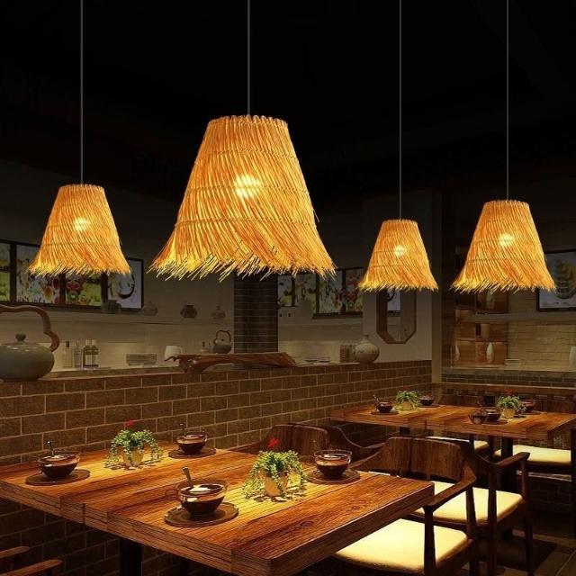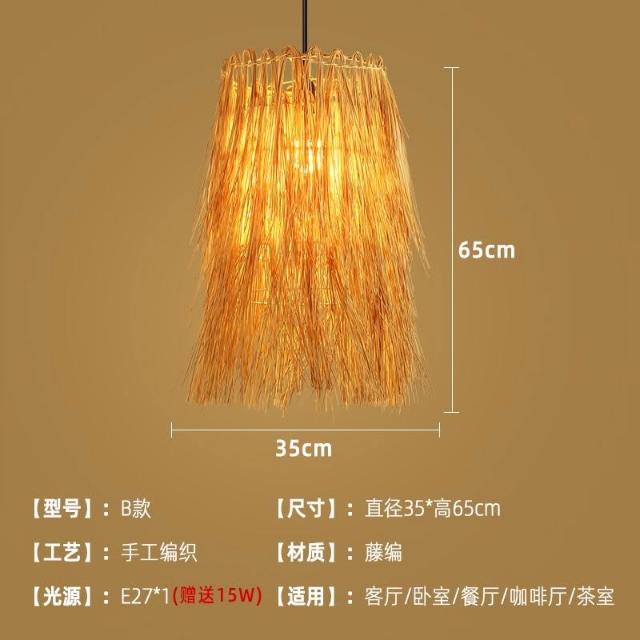 創意毛草吊燈 藤編竹編藝術草帽燈 �nullptrレストラン民宿 MLDD0313YY