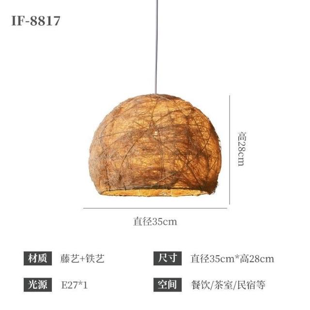 侘寂風藤編吊燈民宿餐廳榻榻米客棧竹編燈復古LED日式藤藝吊燈 MLDD0313YY