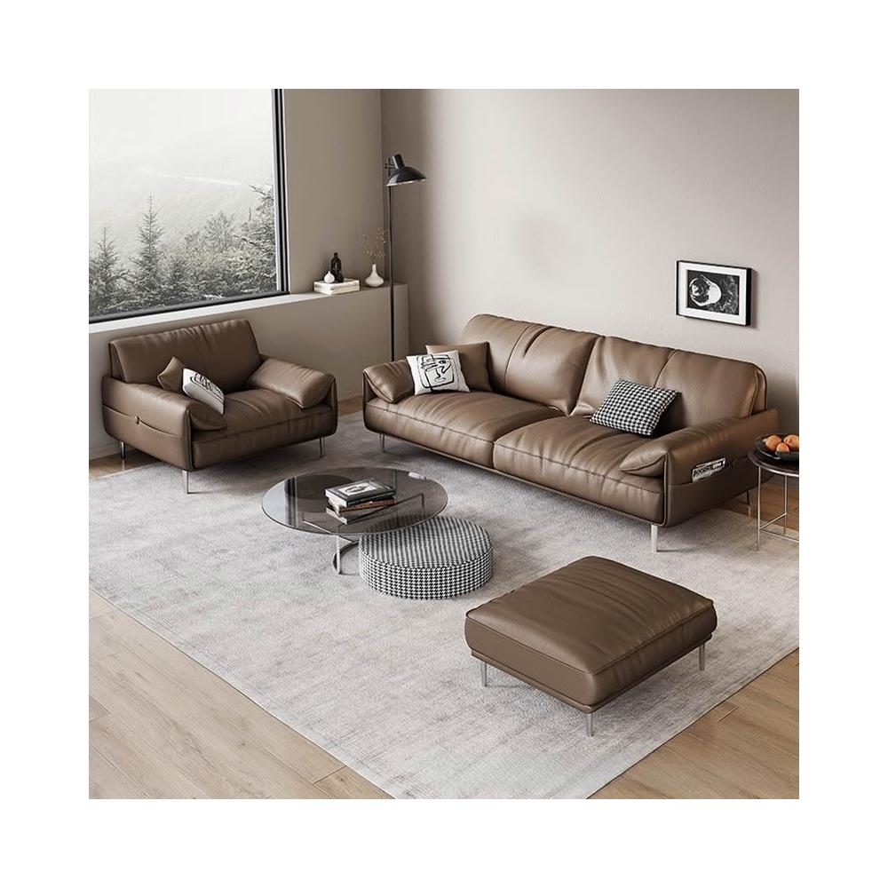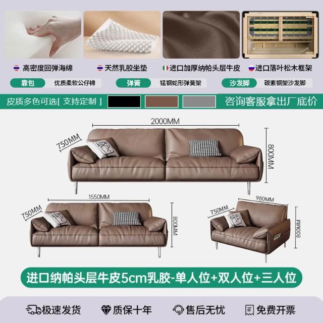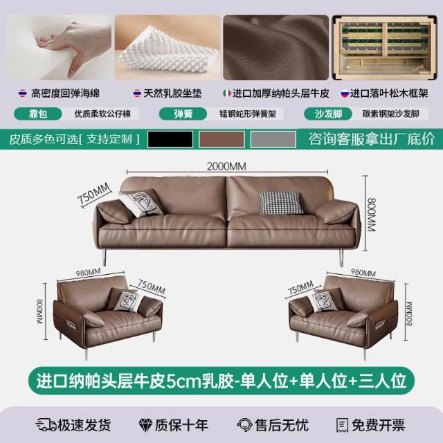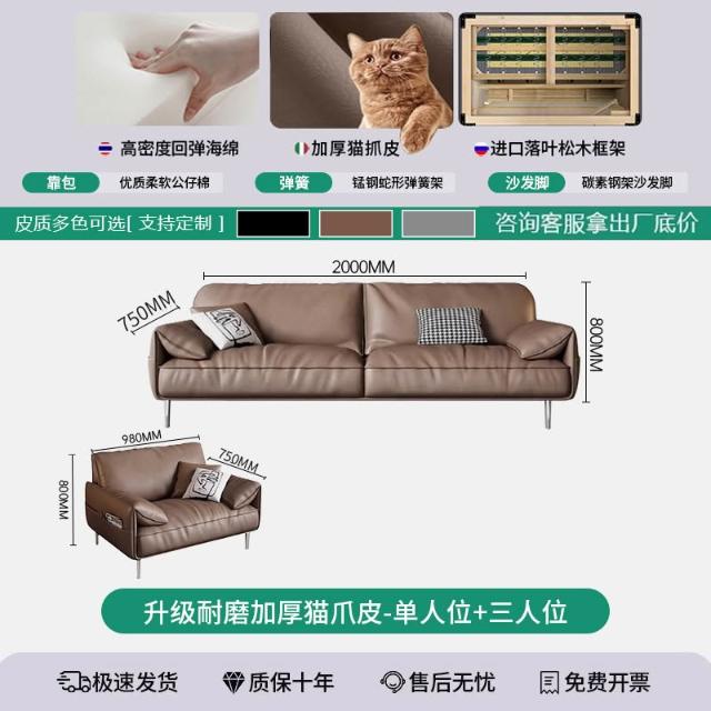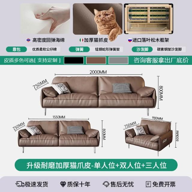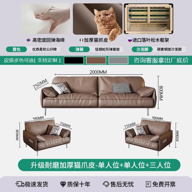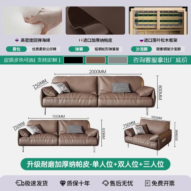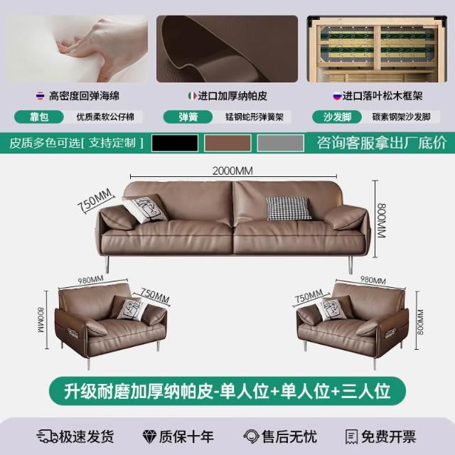 辦公室沙發茶幾組合套裝簡約現代會客商務接待輕奢皮藝三人位沙發 MLDD0314YY