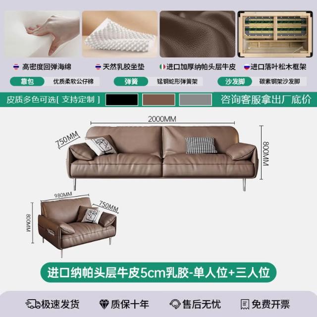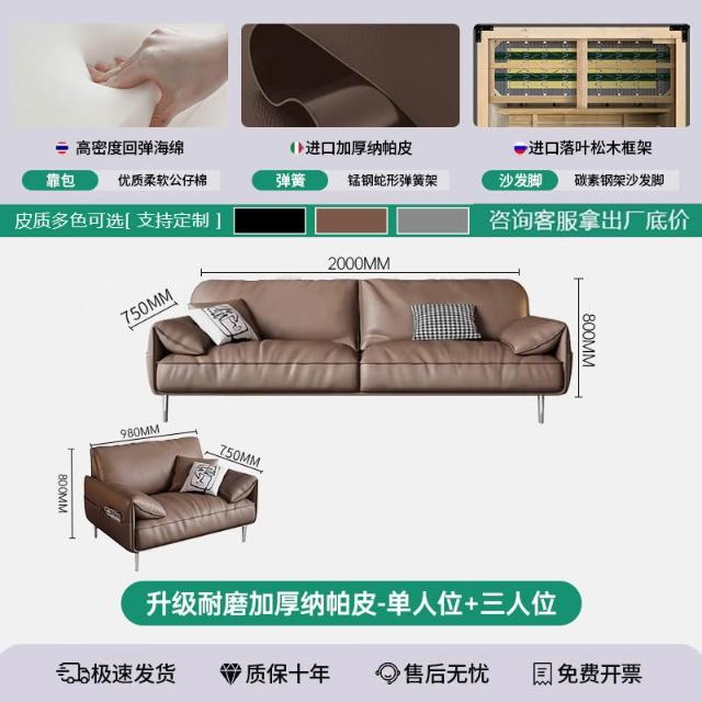 辦公室沙發茶幾組合套裝簡約現代會客商務接待輕奢皮藝三人位沙發 MLDD0314YY