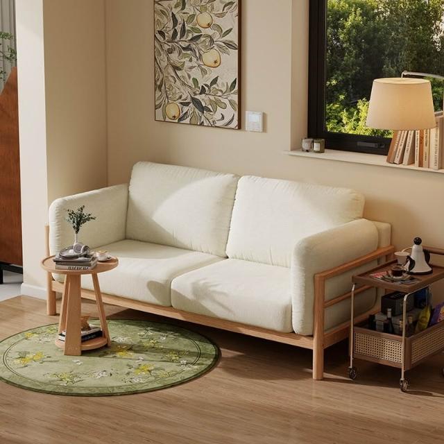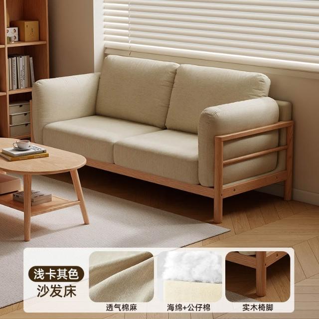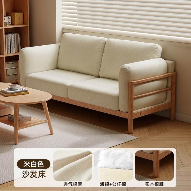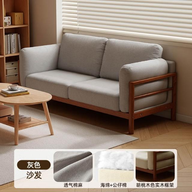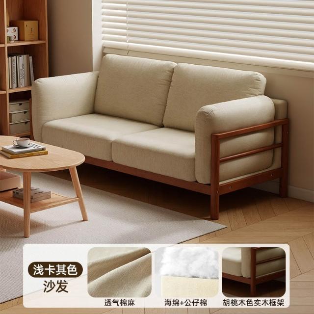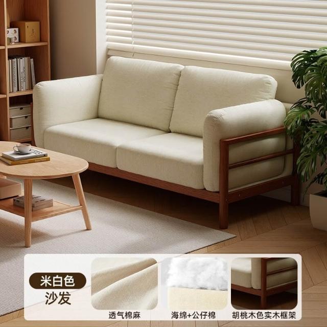 實木布藝沙發小戶型雙人三人位可拆洗客廳簡約現代直排棉麻小沙發 MLDD0314YY