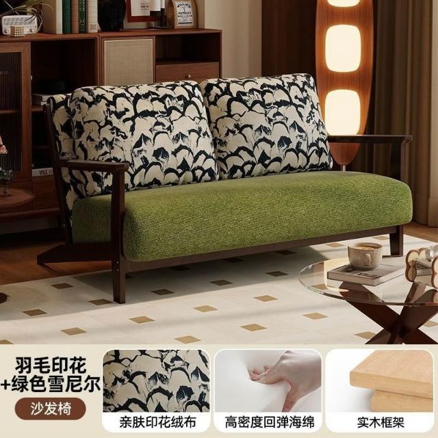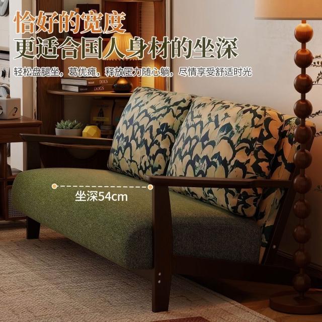 復古風實木沙發雙人三人位小戶型客廳新款中古風拼色布藝沙發 MLDD0314YY