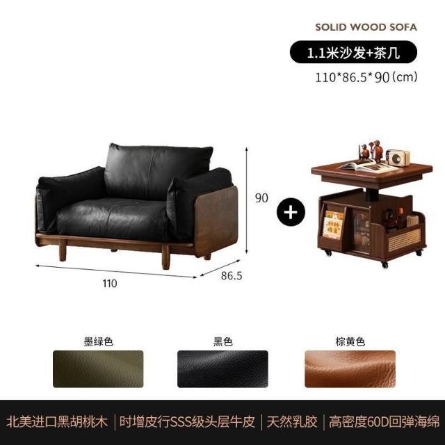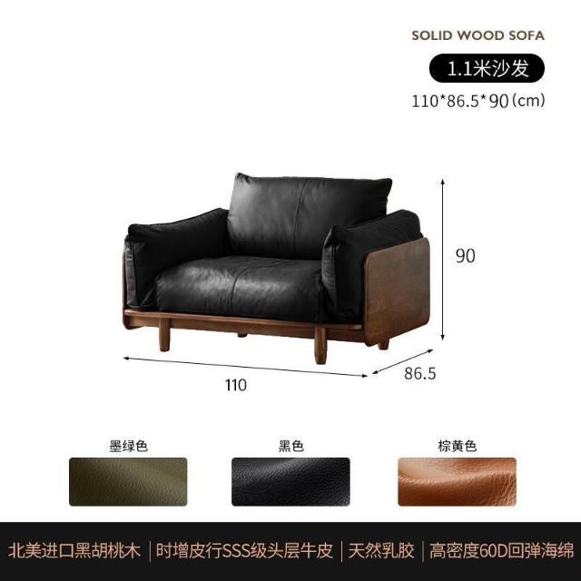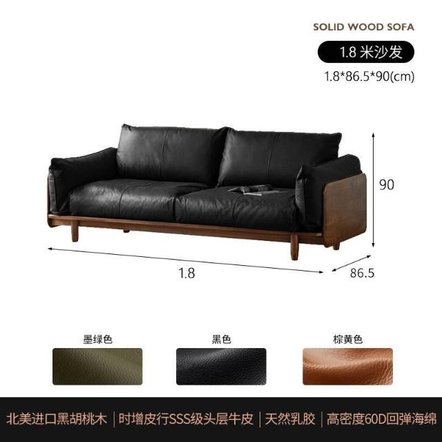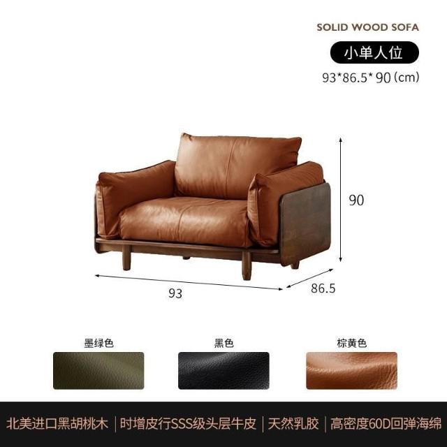 中古風實木沙發小戶型皮藝沙發客廳意式輕奢家用黑胡桃木色沙發 MLDD0314YY