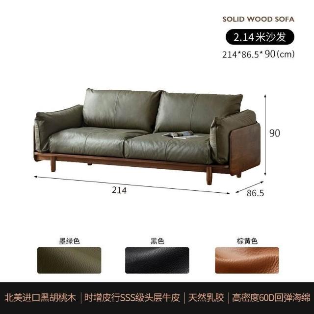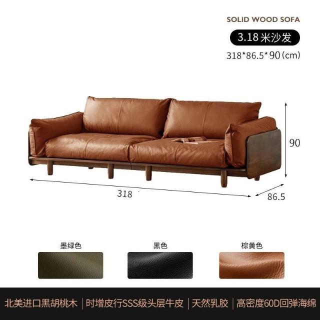 中古風實木沙發小戶型皮藝沙發客廳意式輕奢家用黑胡桃木色沙發 MLDD0314YY