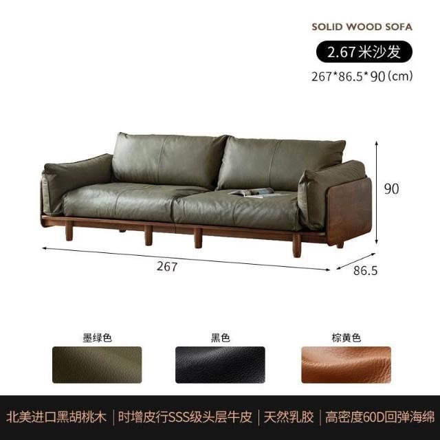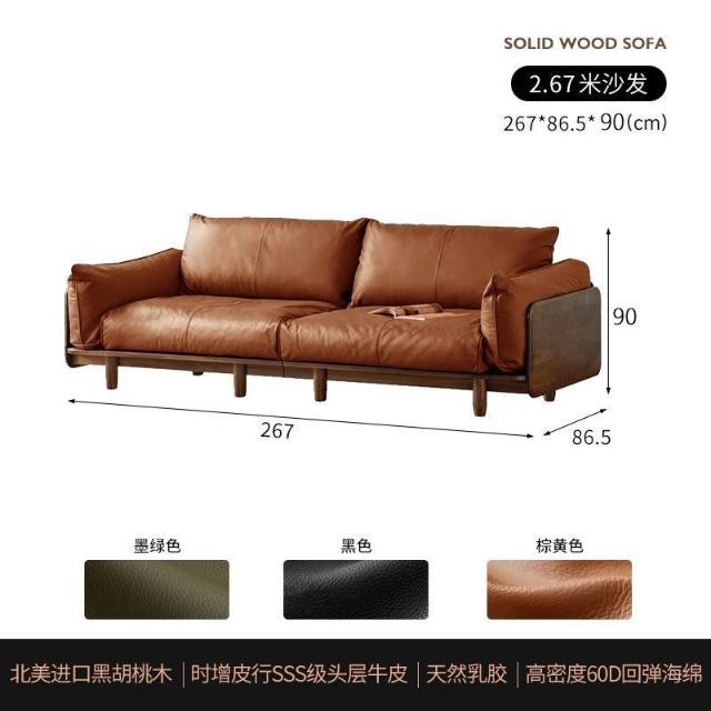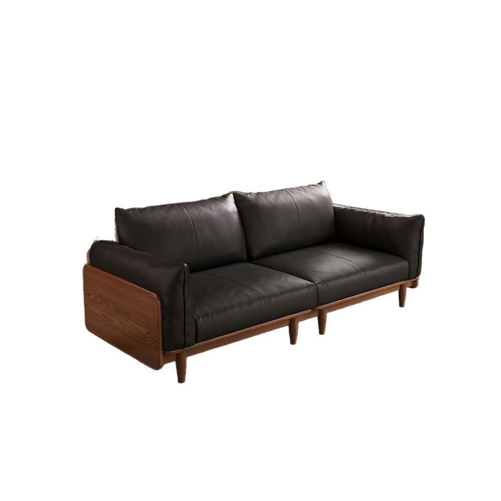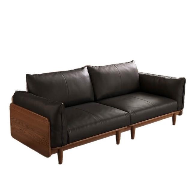 中古風實木沙發小戶型皮藝沙發客廳意式輕奢家用黑胡桃木色沙發 MLDD0314YY