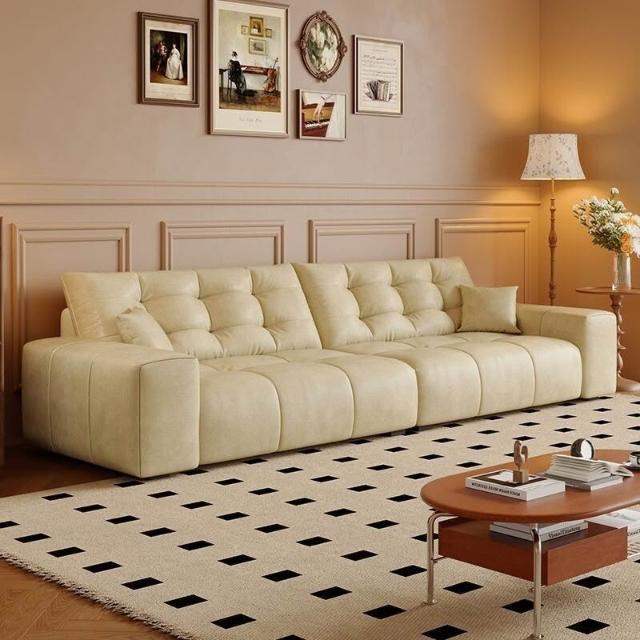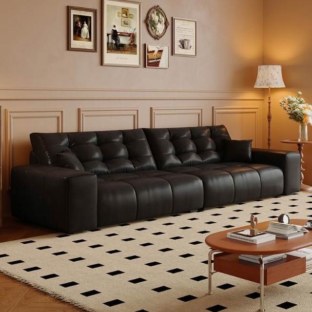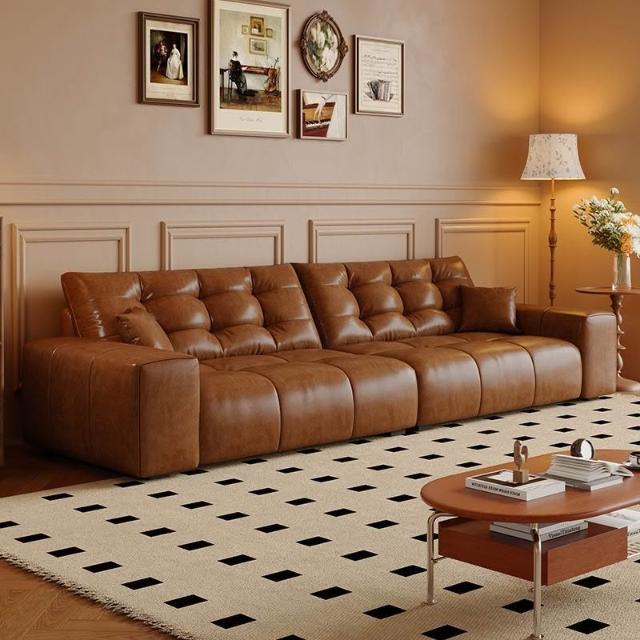 法式復古風油蠟貓抓皮沙發客廳小戶型現代簡約中古風做舊棕色沙發 MLDD0314YY
