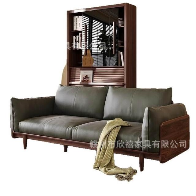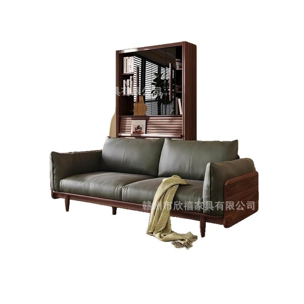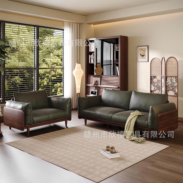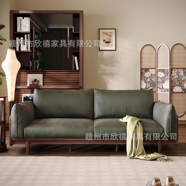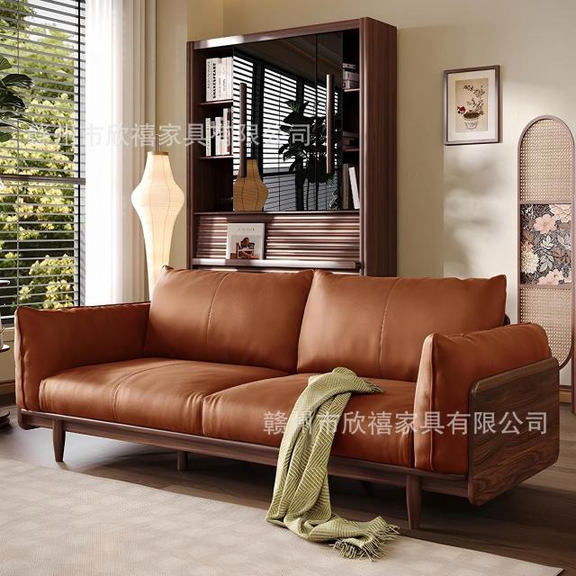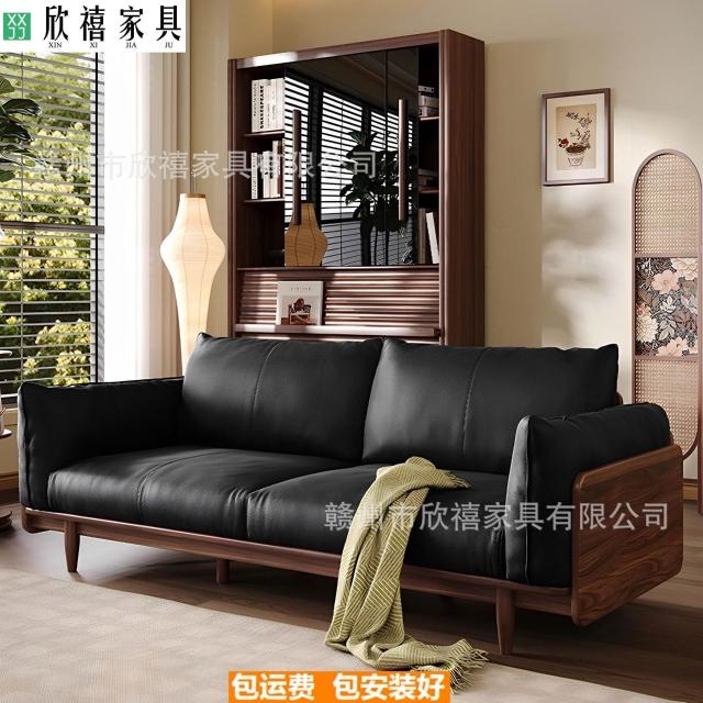 黑胡桃木沙發2026款實木真皮客廳意式小戶型直排家用中古風沙發 MLDD0314YY