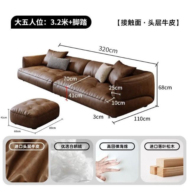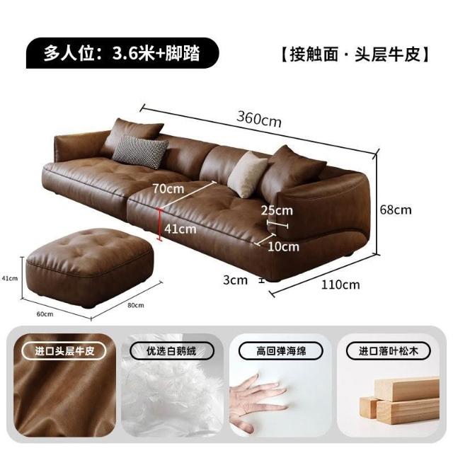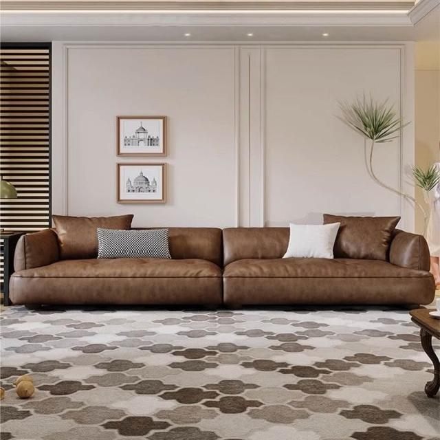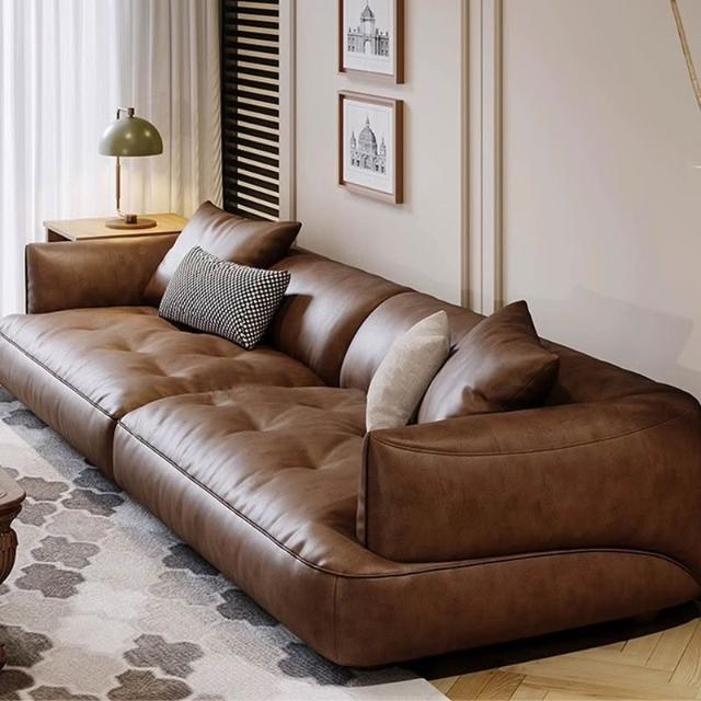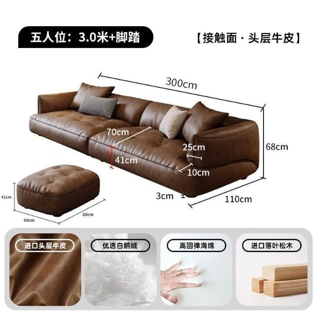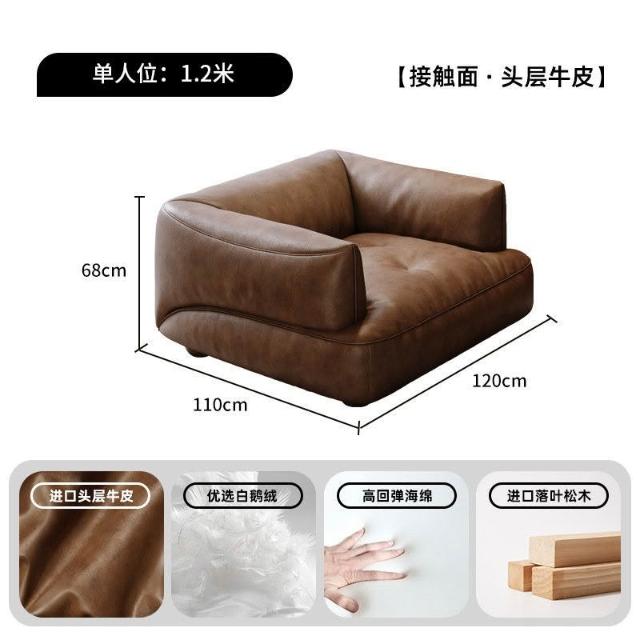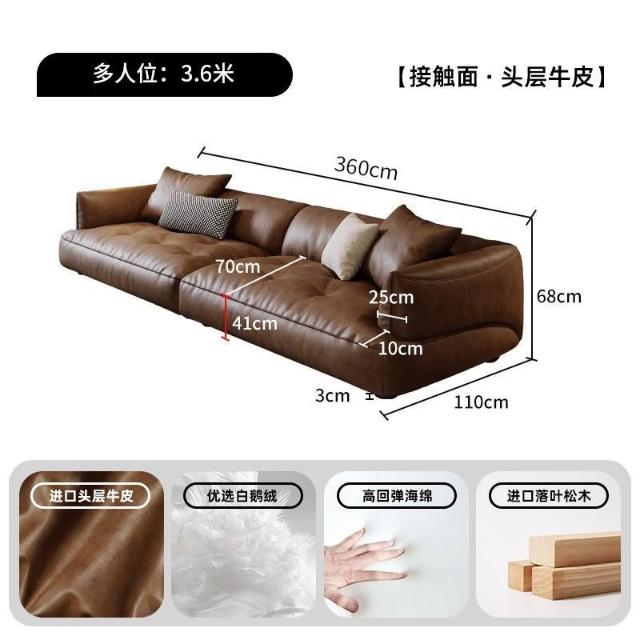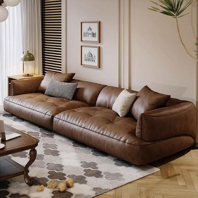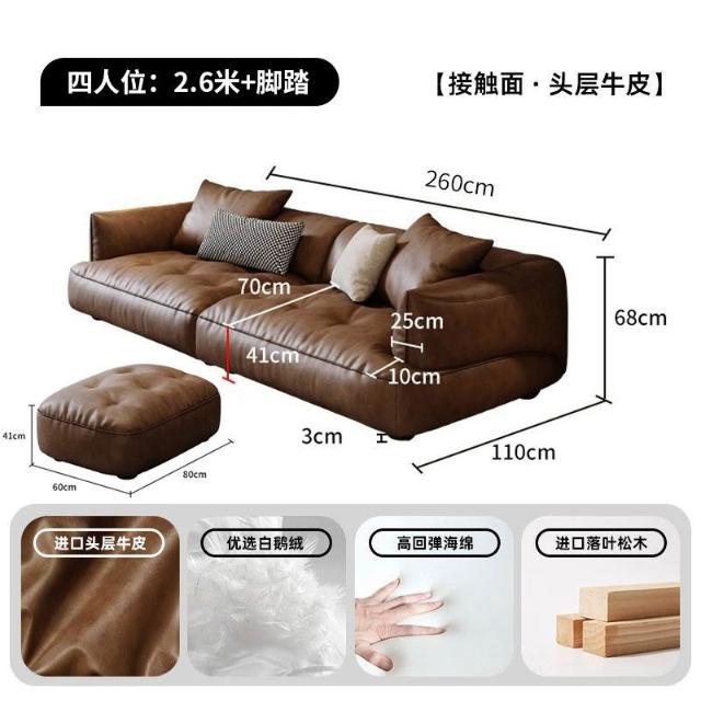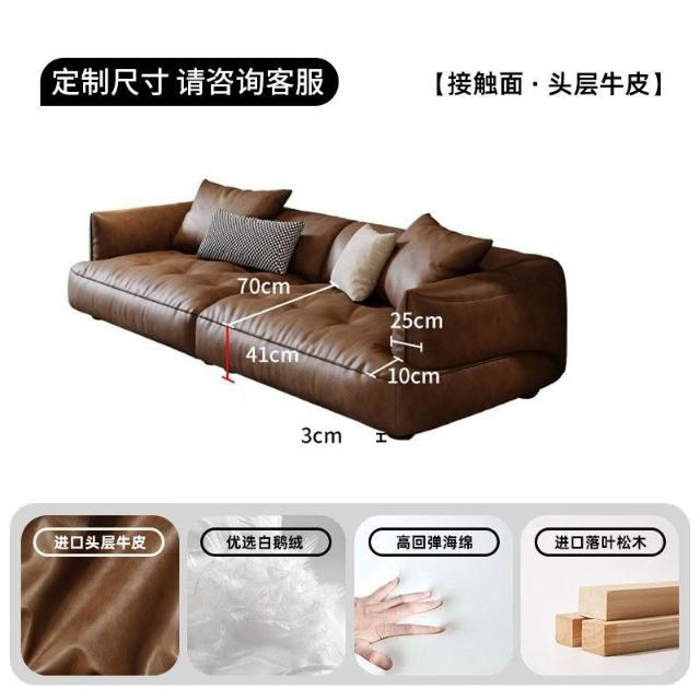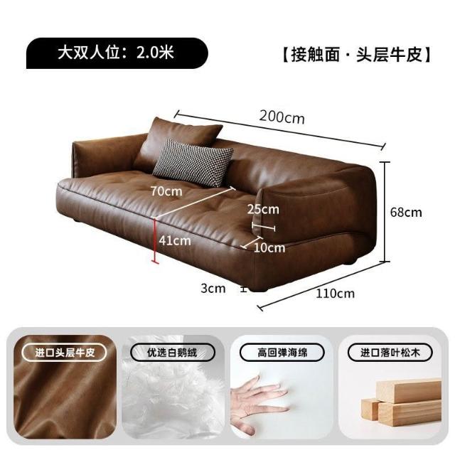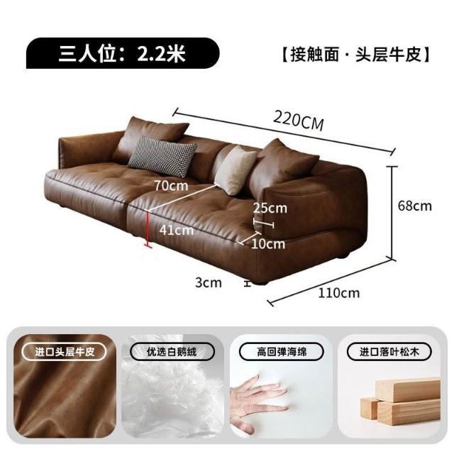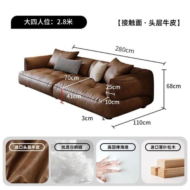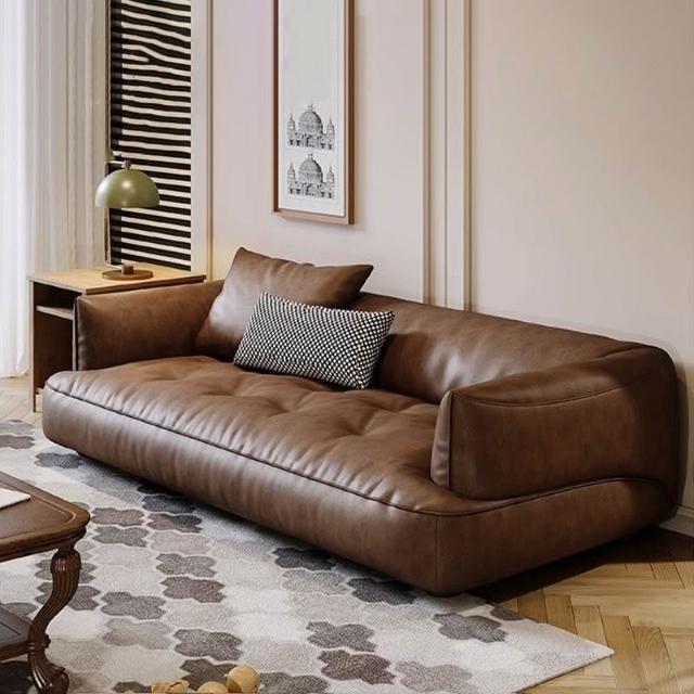 新款意式極簡復古風頭層牛皮沙發客廳小戶型大坐深云朵真牛皮沙發 MLDD0314YY