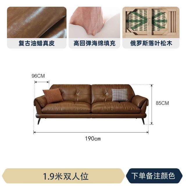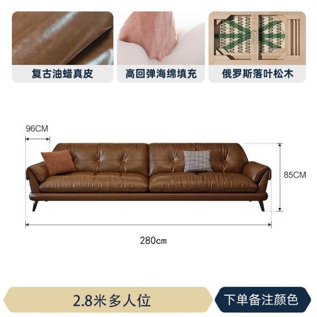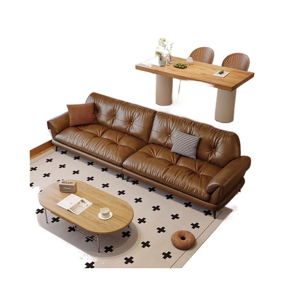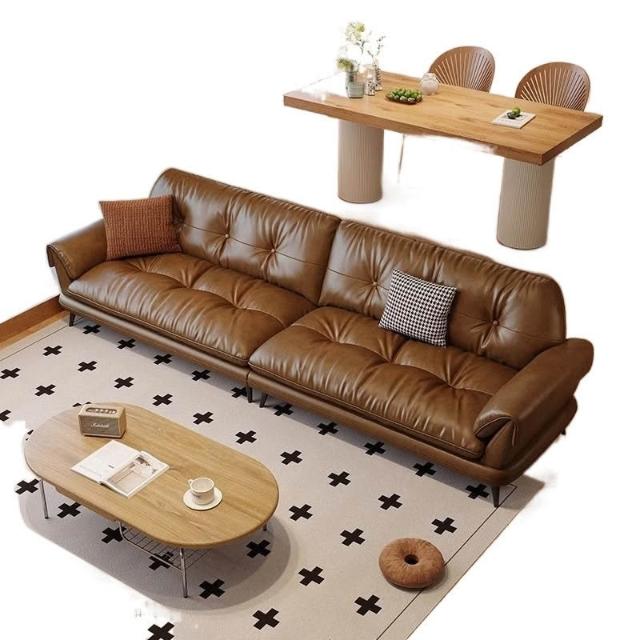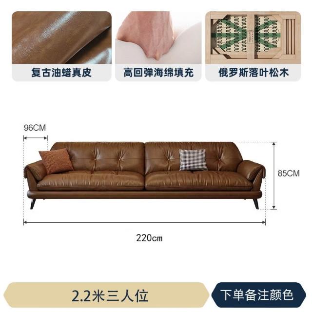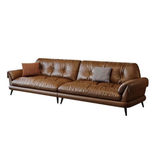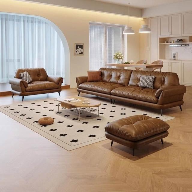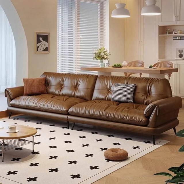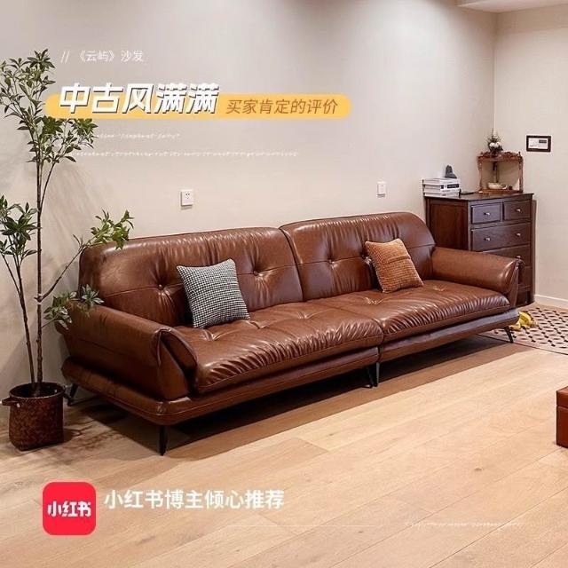 中古風油蠟皮沙發現代簡約復古客廳小戶型云嶼沙發棕咖色直排 MLDD0314YY