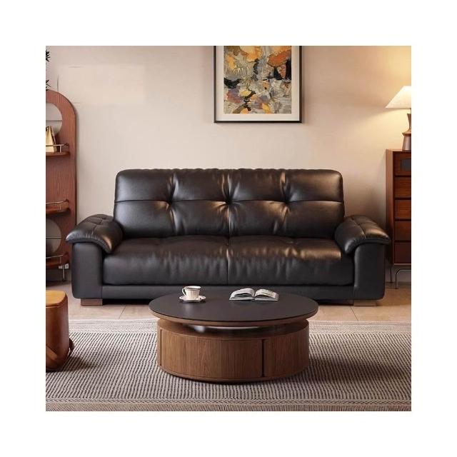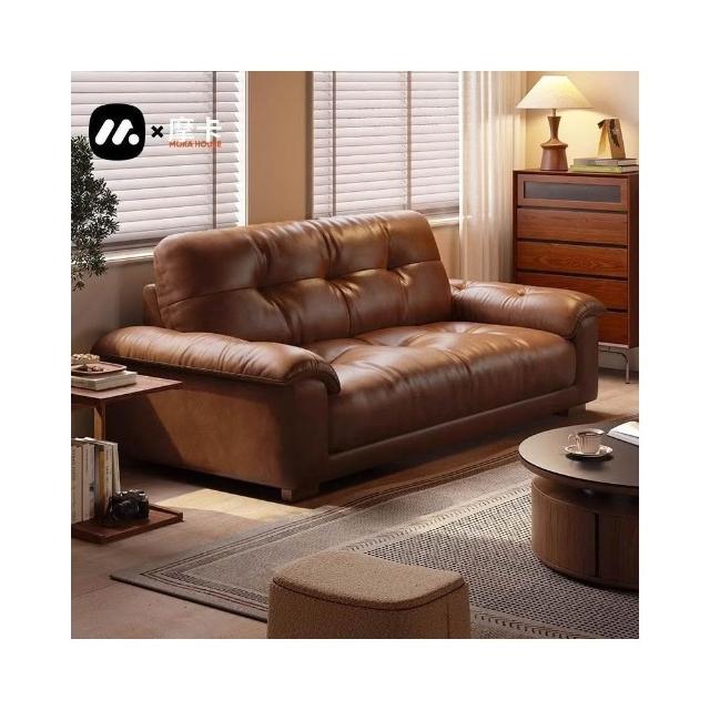 復古風油蠟皮沙發沙發小戶型客廳皮藝沙發古風焦糖色直排 MLDD0314YY