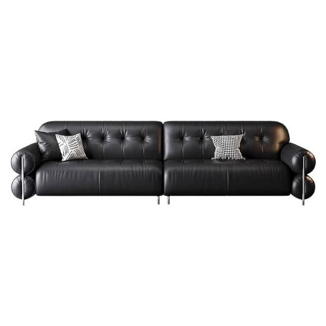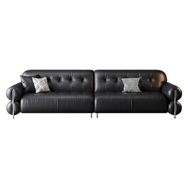 意式沙發輕奢法式復古真皮沙發客廳小戶型頭層真皮黑色直排美式 MLDD0314YY