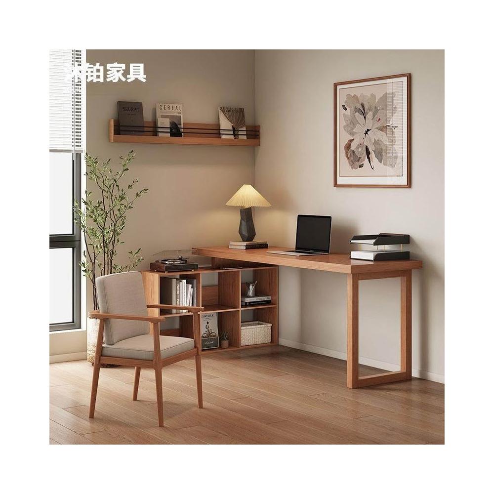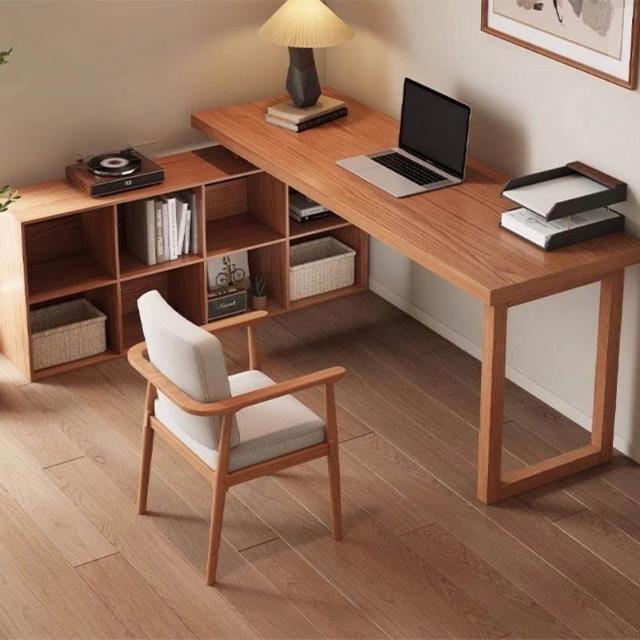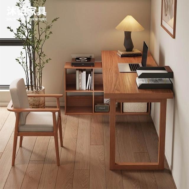 實木轉角書桌書柜一體小戶型L型拐角桌臥室書房書桌學習桌電腦桌 MLDDSZYY