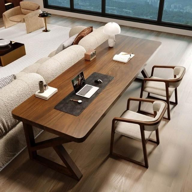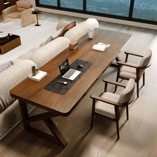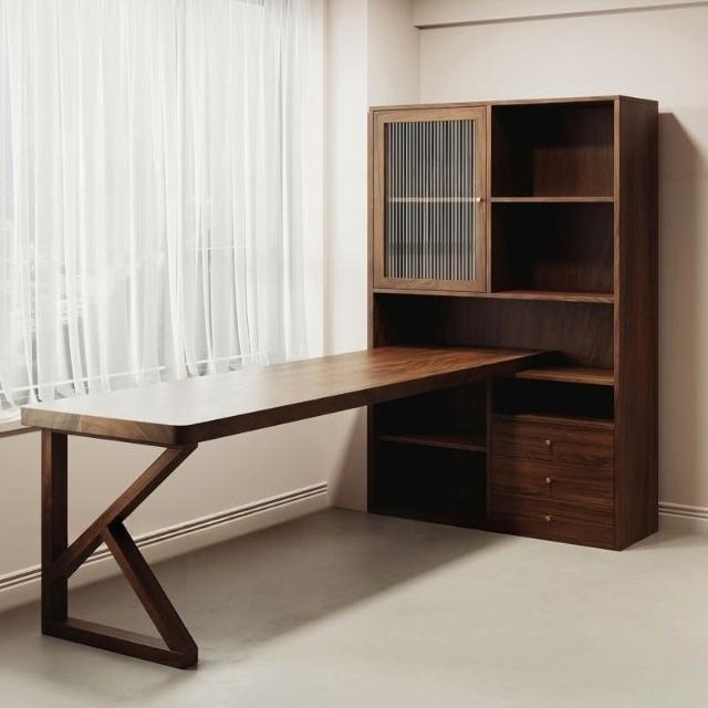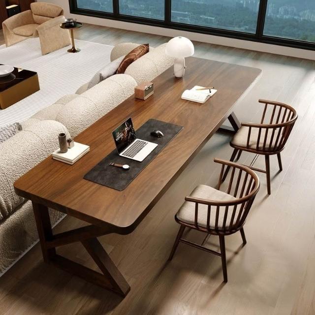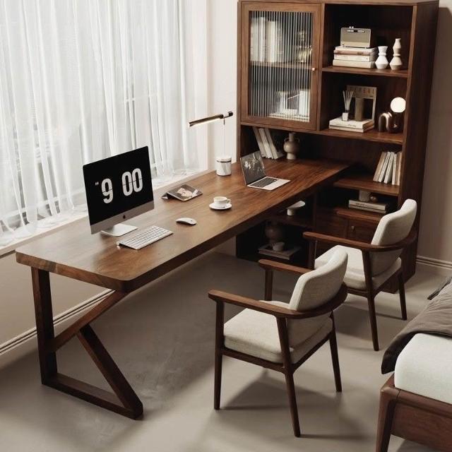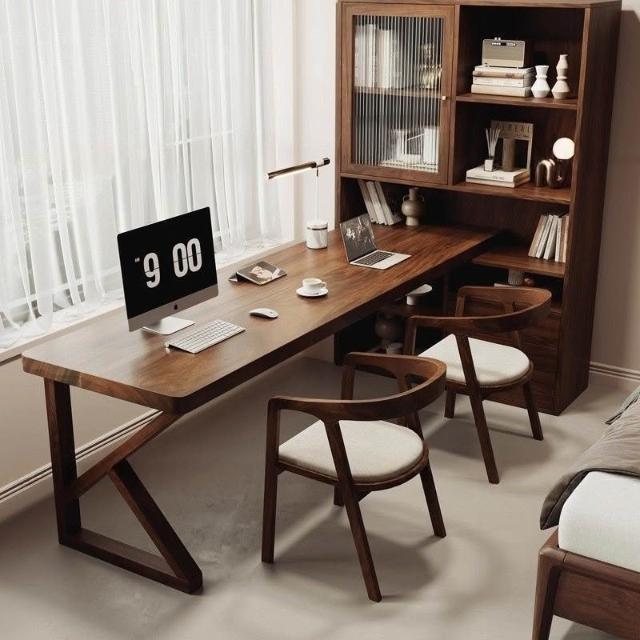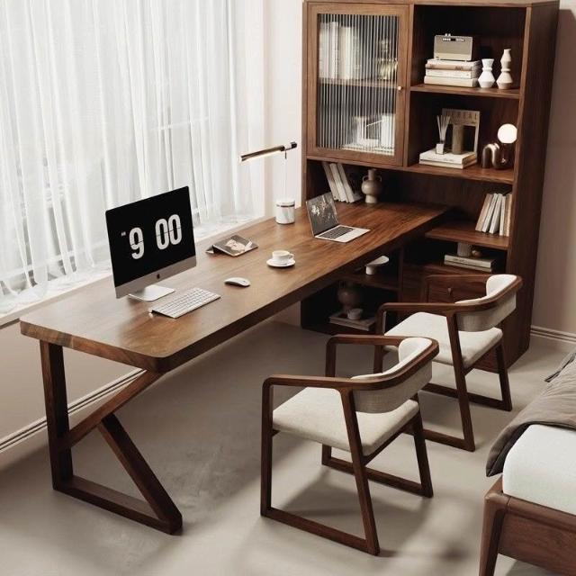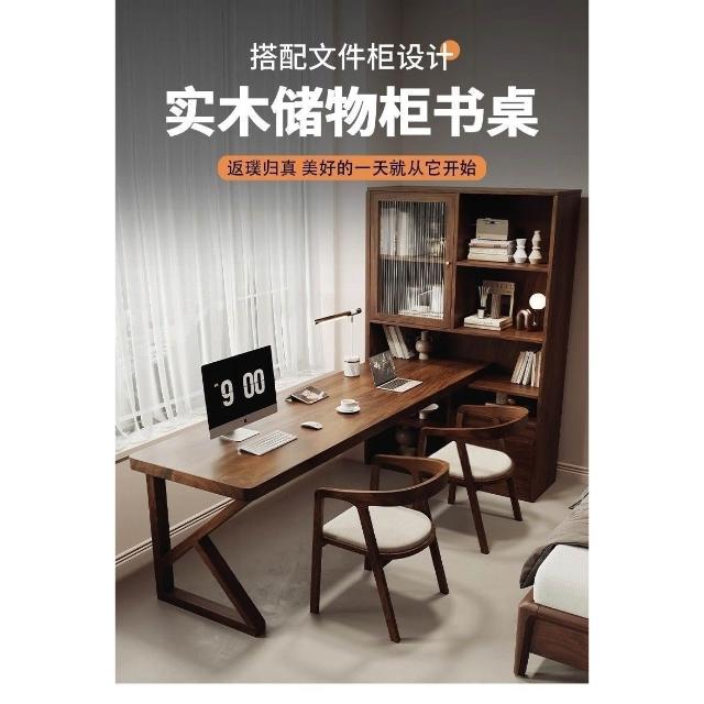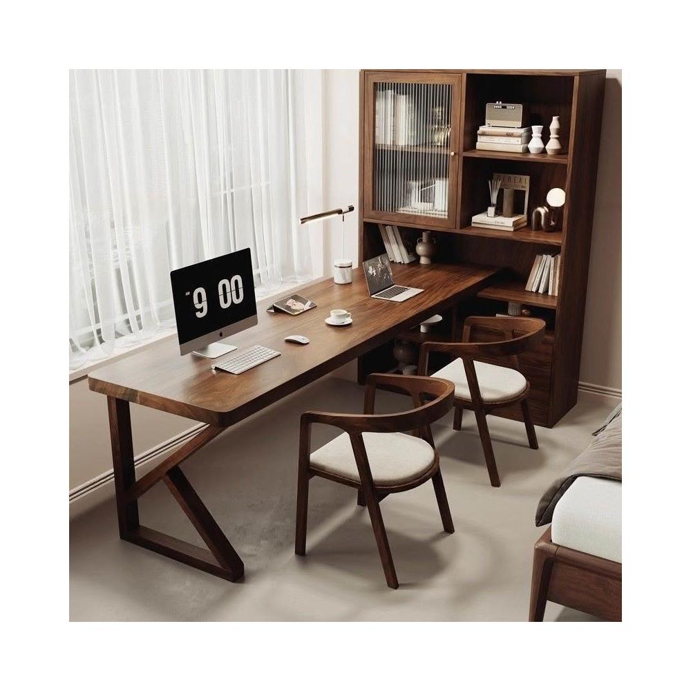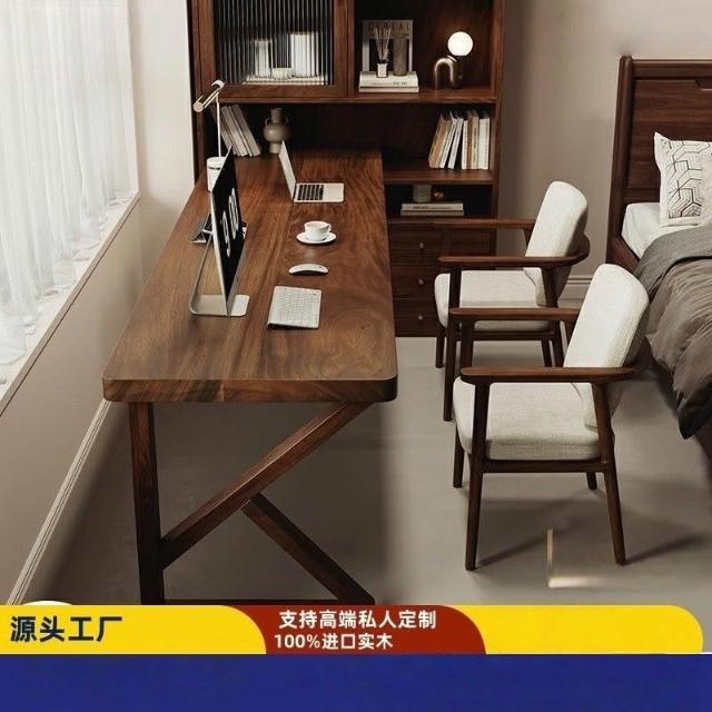 南美黑胡桃木現代多功能書桌臥室讀書寫字書柜小戶型雙人電腦桌子 MLDDSZYY