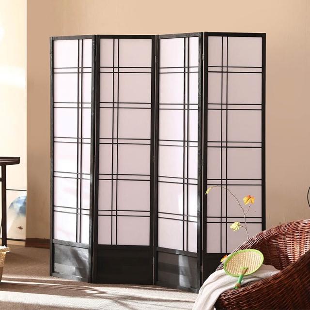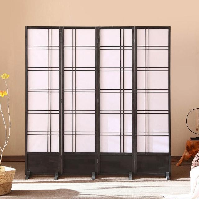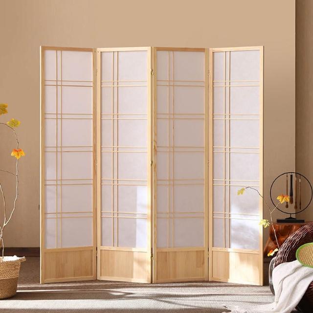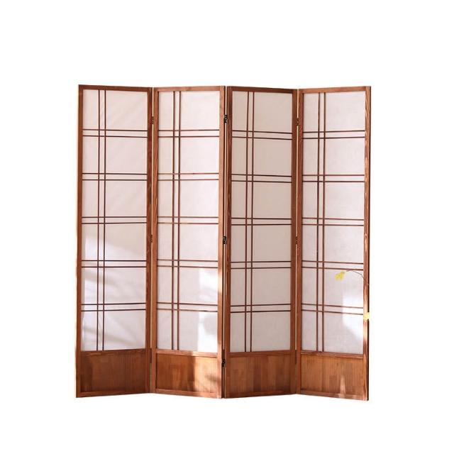 屏風日式松木染色邊框簡約格子遮擋家居玄關折疊屏風隔斷 YY23