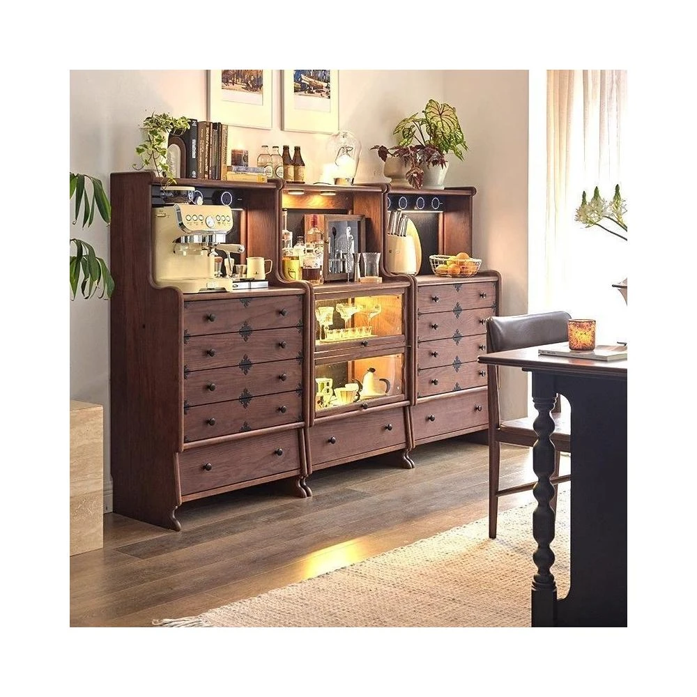 法式復古袋鼠模組組合餐邊櫃全實木靠牆一體儲物櫃中古含電力軌道 Y03001