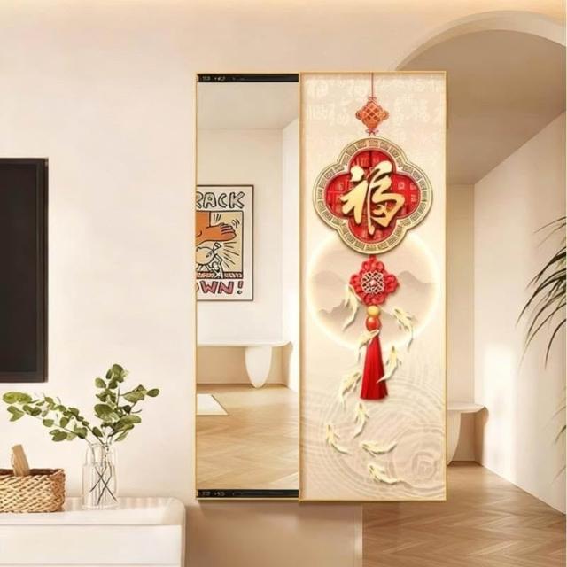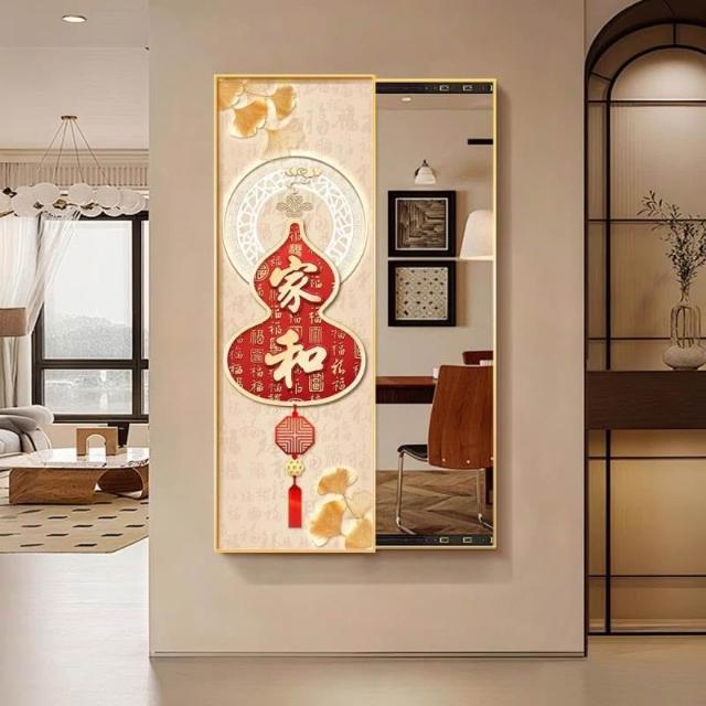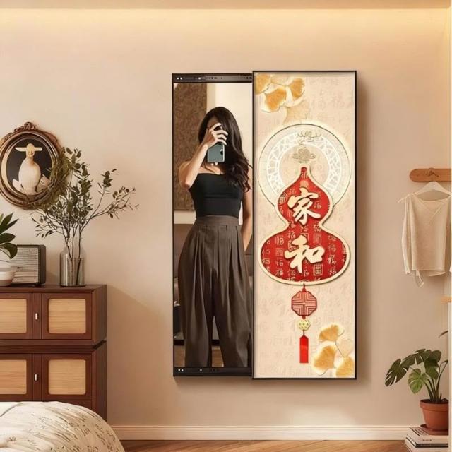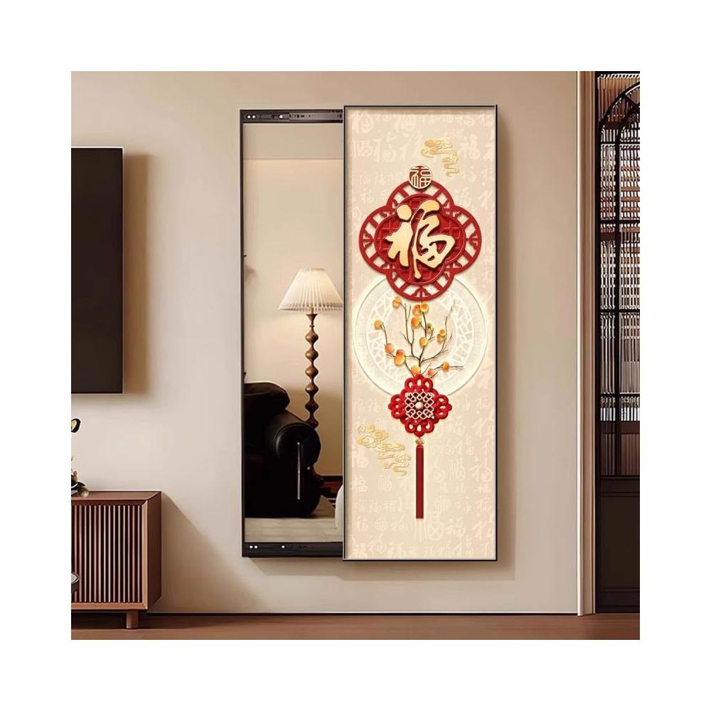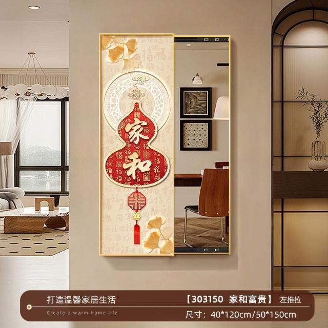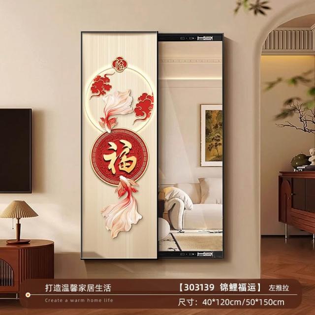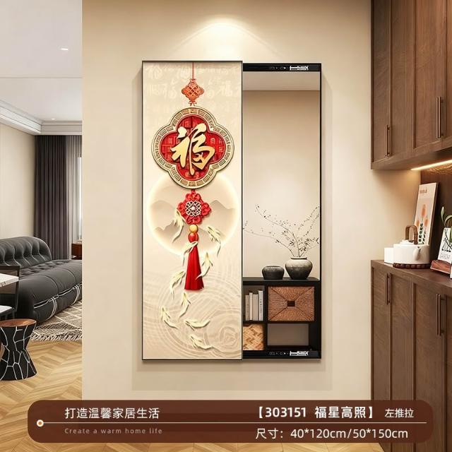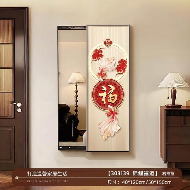 福字客廳鏡子裝飾畫新中式入戶墻上可推拉暗藏式穿衣鏡玄關試衣鏡 Y0328