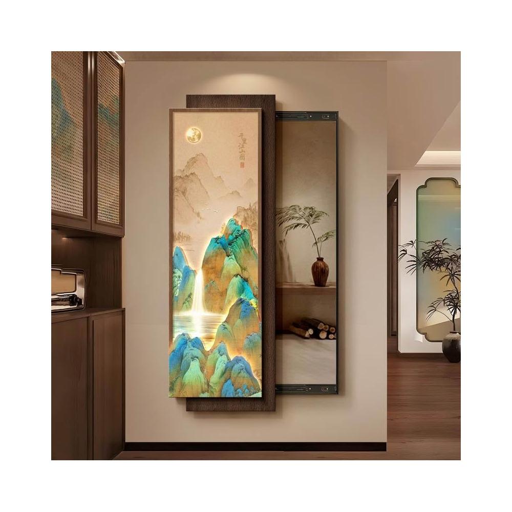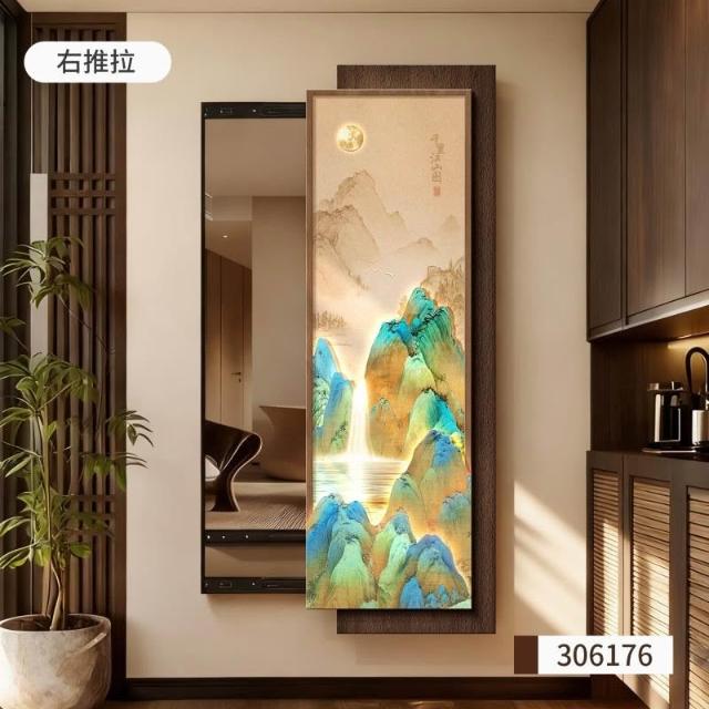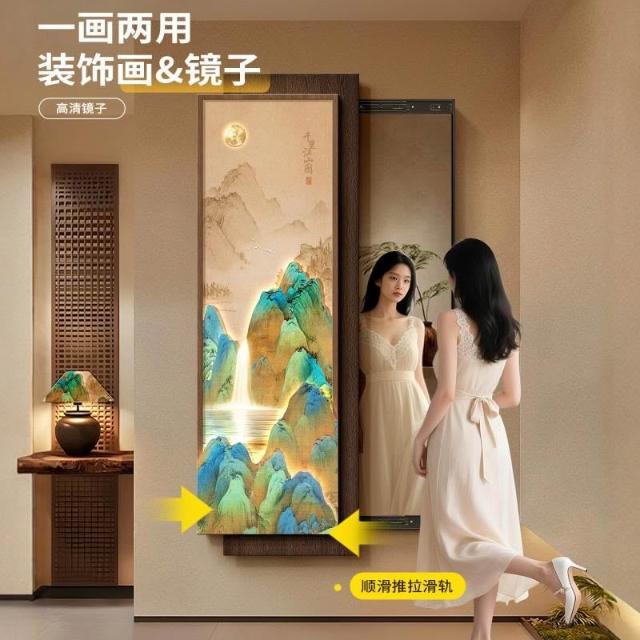 宋代美學可推拉暗藏式全身鏡千里江山圖新中式玄關穿衣鏡子裝飾畫 Y0328