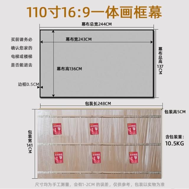 150寸窄邊金屬黑晶貼墻壁掛免打孔抗光投影布畫框幕 YM