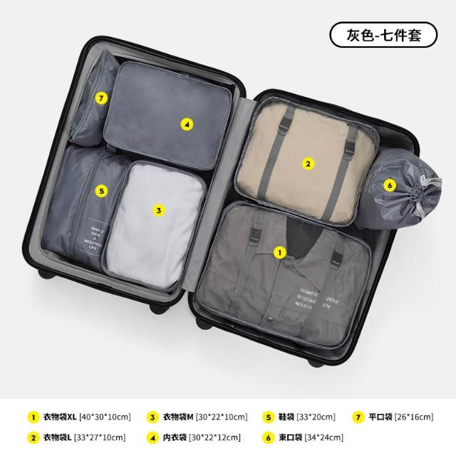 旅行收納套裝七件套裝數碼洗漱化妝品分裝收納包衣服鞋子行李旅行 YTDD31