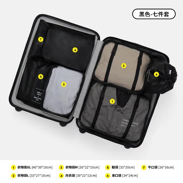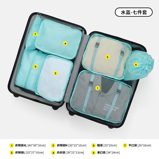 旅行收納套裝七件套裝數碼洗漱化妝品分裝收納包衣服鞋子行李旅行 YTDD31