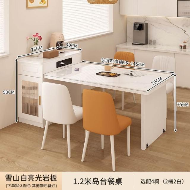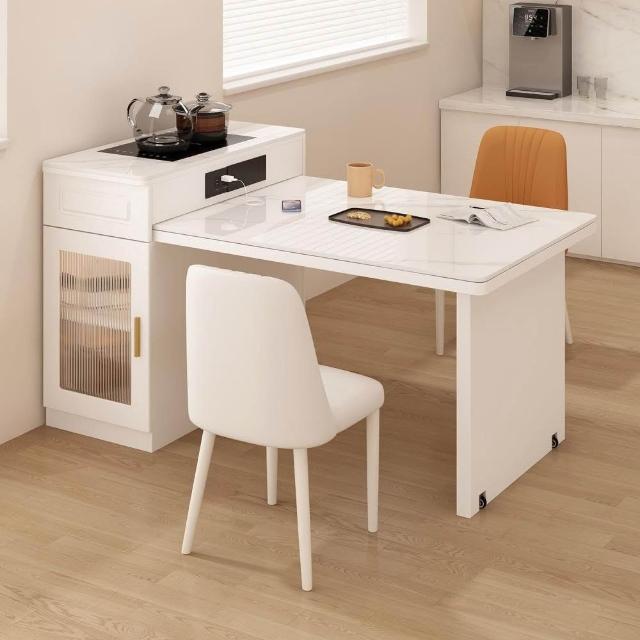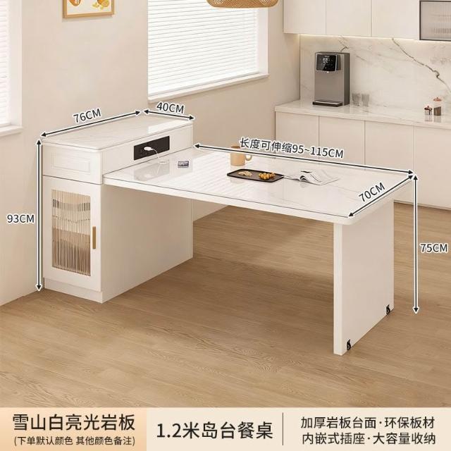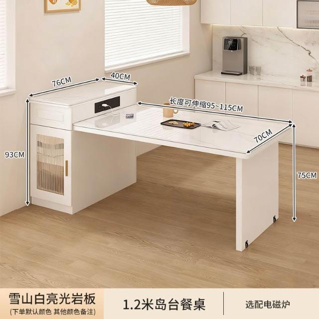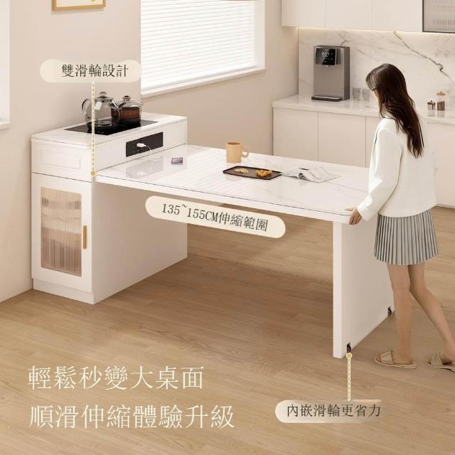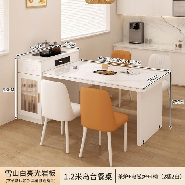 岩板中島餐桌茶臺小戶型一體家用伸縮導臺現代多功能吃飯桌 MMLD0407