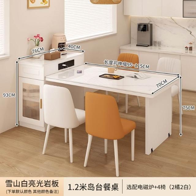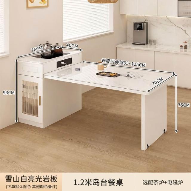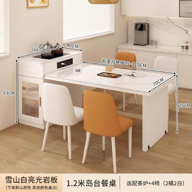 岩板中島餐桌茶臺小戶型一體家用伸縮導臺現代多功能吃飯桌 MMLD0407