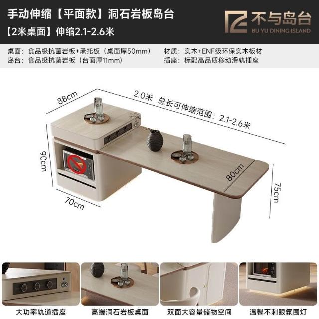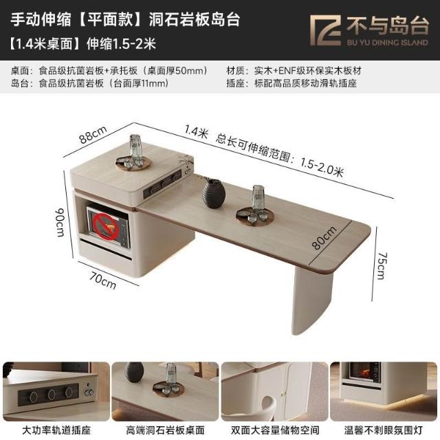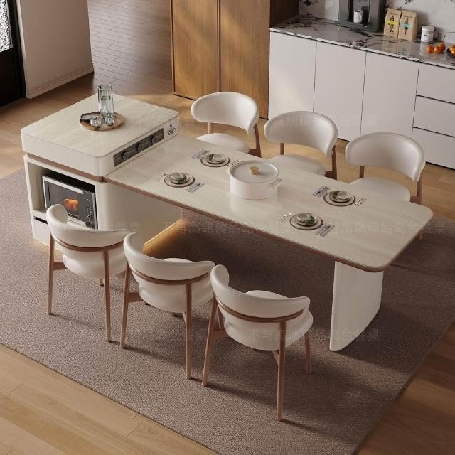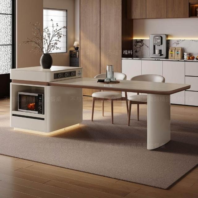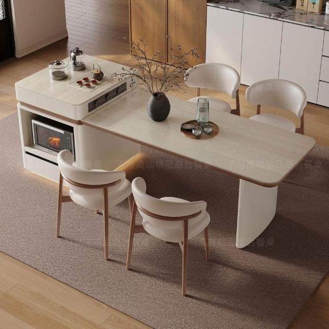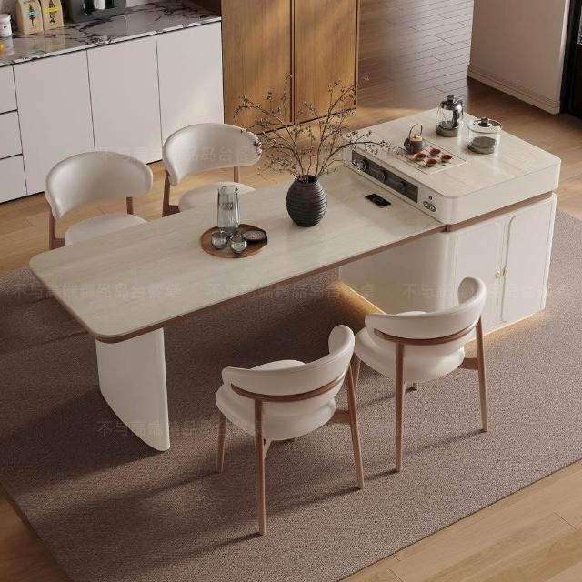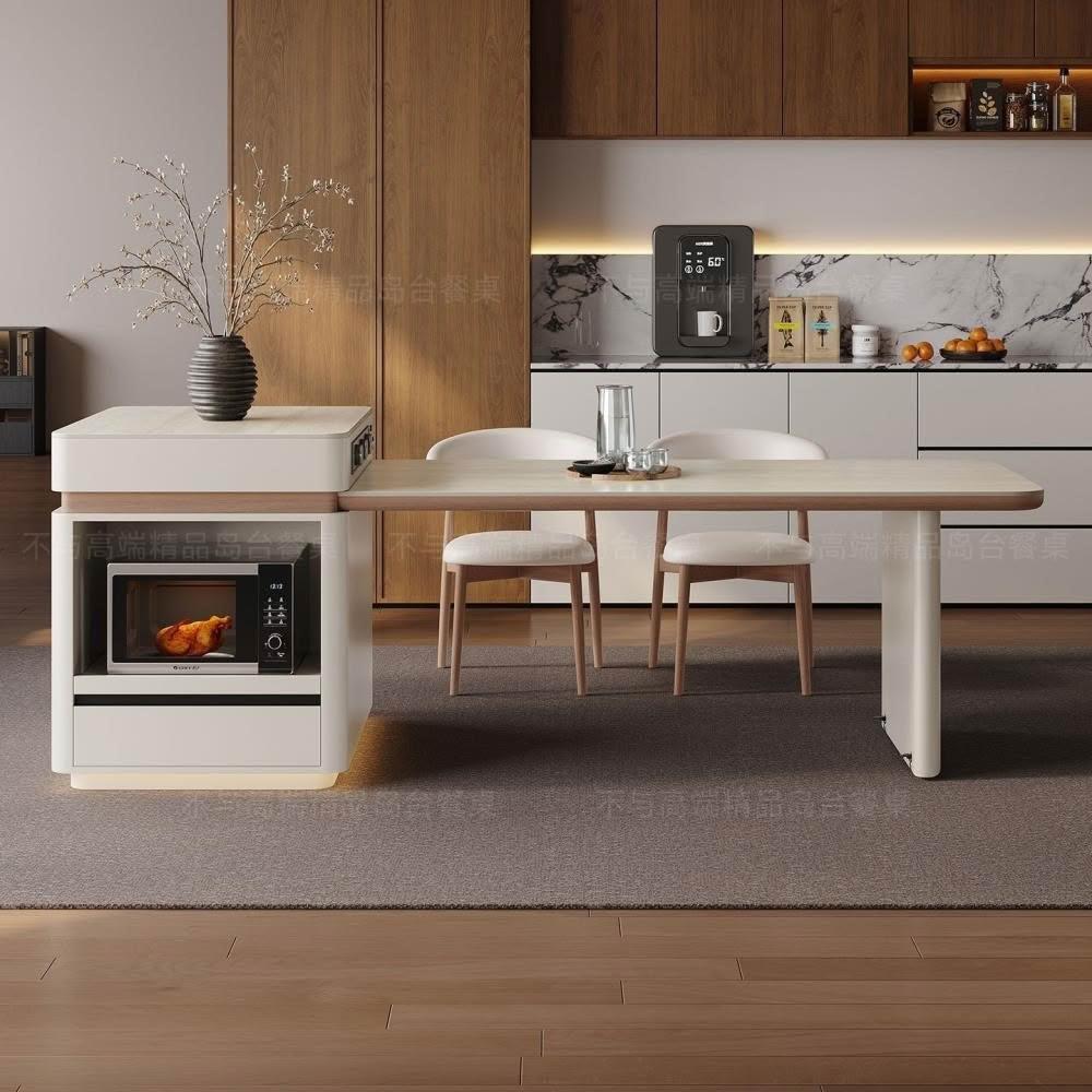 中島餐桌一體家用可伸縮電動法式中導臺高級感岩板餐桌 MMLD0407