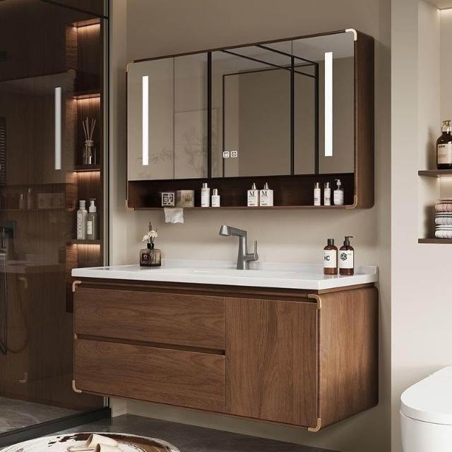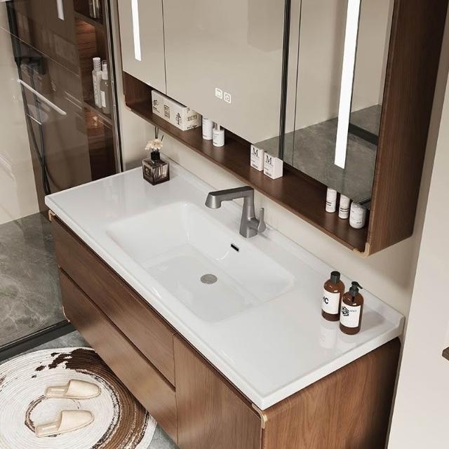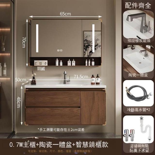 橡木烤漆智能浴室櫃鏡櫃組合烤漆實木衛生間洗漱臺陶瓷一體 浴室櫃浴室鏡 411