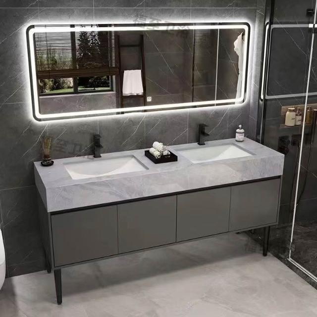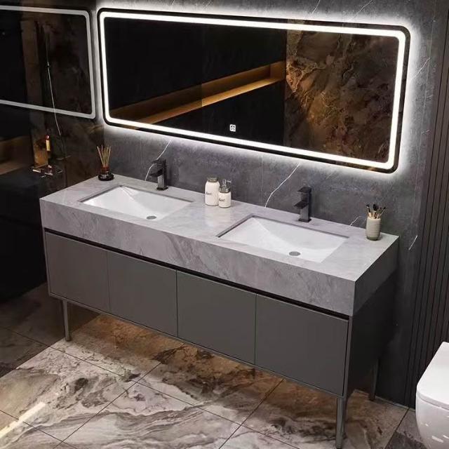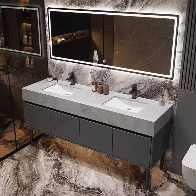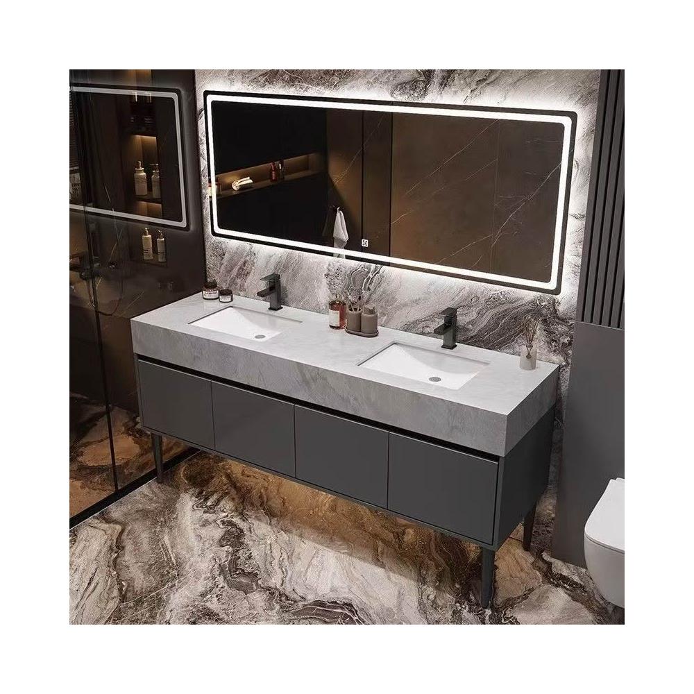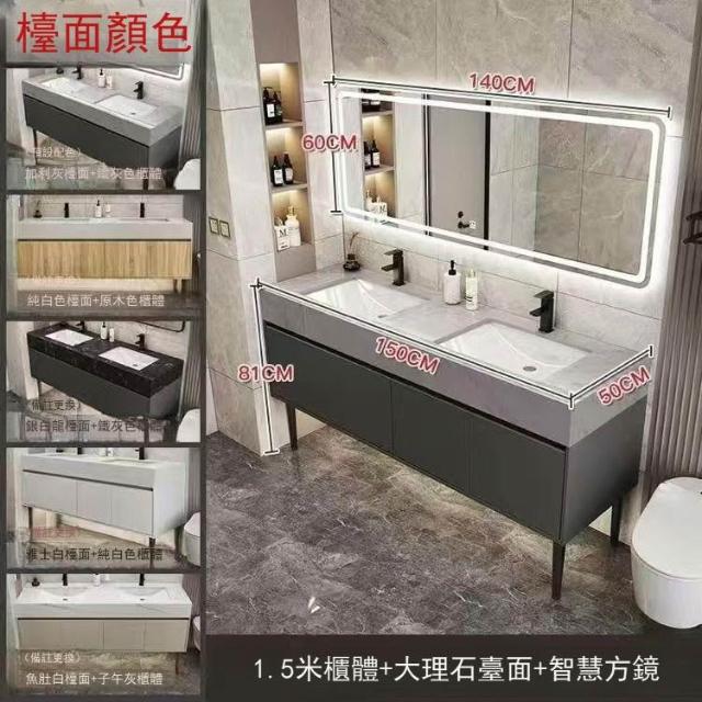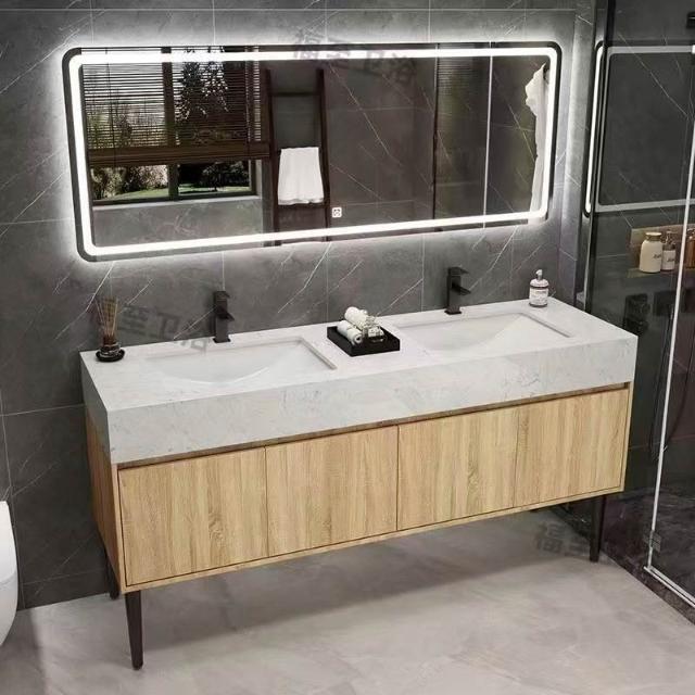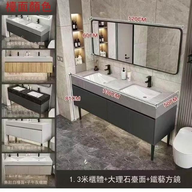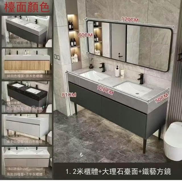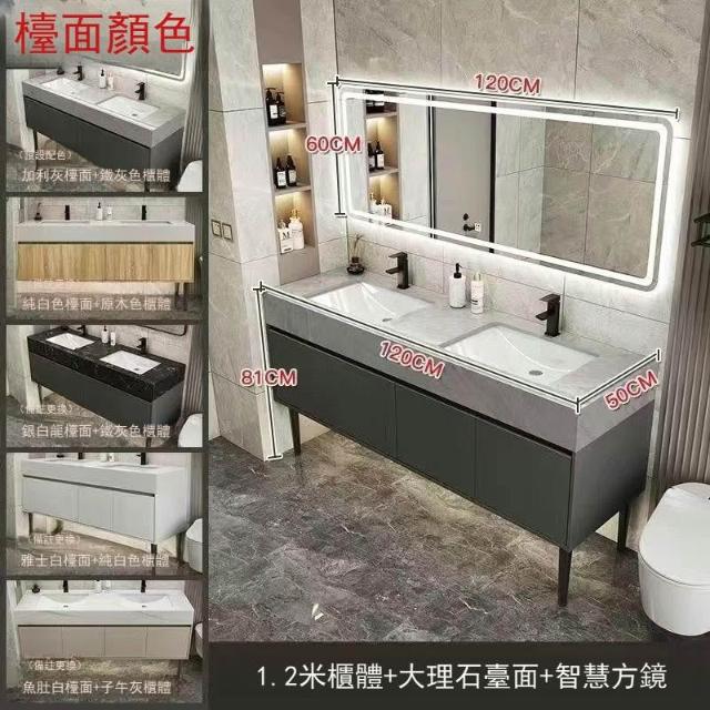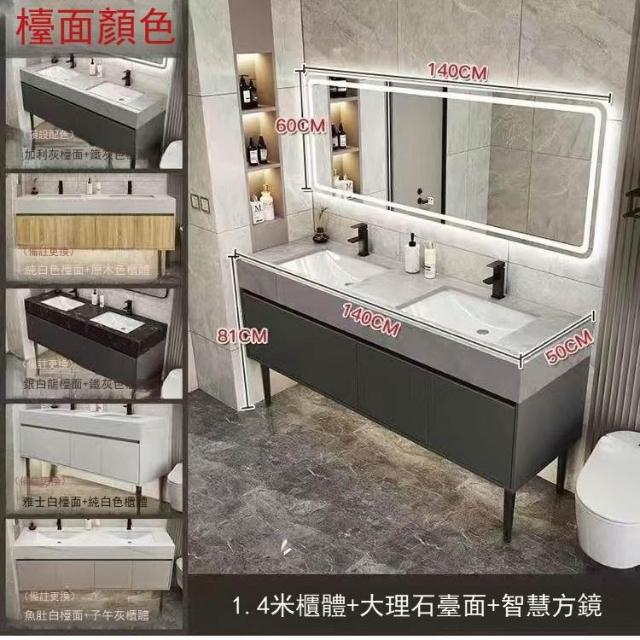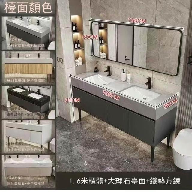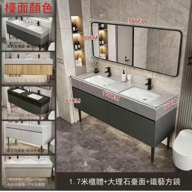 落地式大理石雙盆浴室櫃組合公共衛生間酒店衛浴洗漱臺洗臉盆套裝 浴室櫃浴室鏡 411