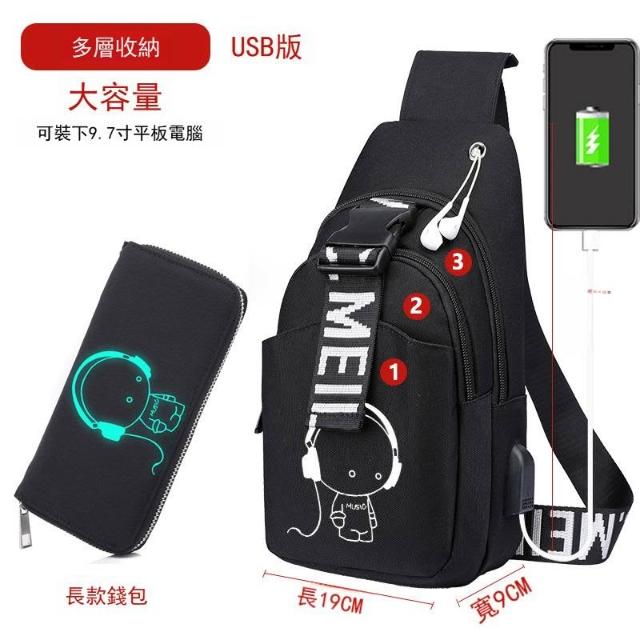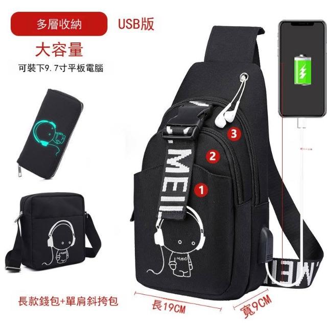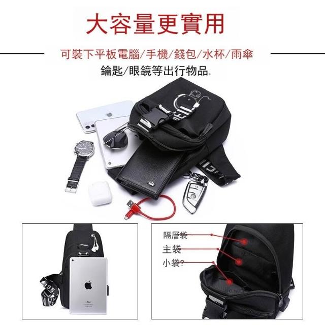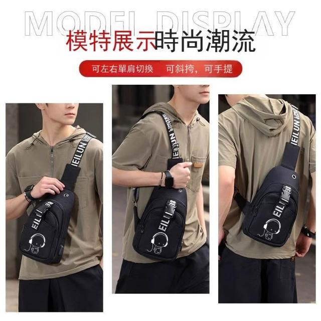 防盜男包男士胸包休閑斜挎包多功能單肩包帆布斜挎包充電 男包 MLDD0418