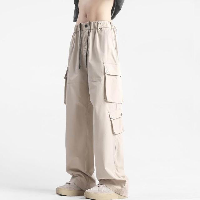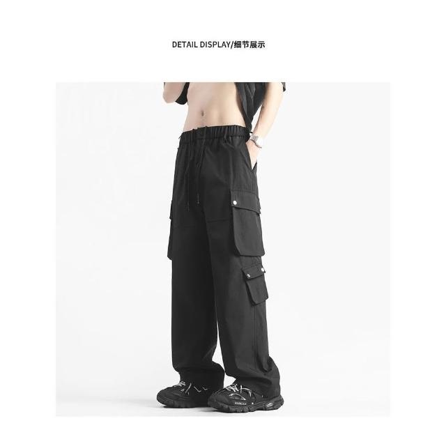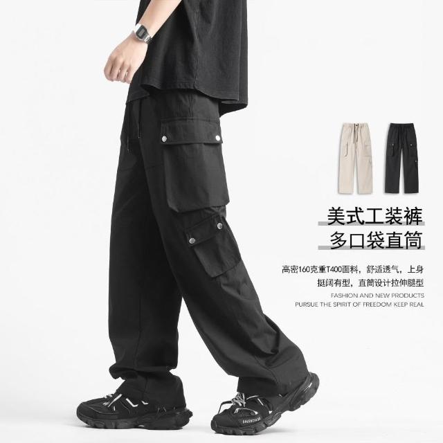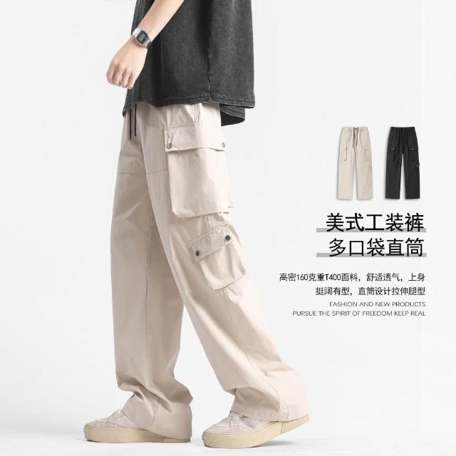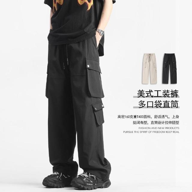 長褲男裝褲子涼感寬褲男工裝褲工作褲長褲多口袋大尺碼九分褲工作褲休閒褲多口袋四季百搭工作褲休閒潮流寬鬆直筒休閒褲美式工裝褲