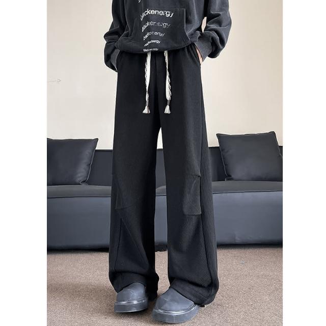 垂墜感日系褲子男 長褲男 M-5XL 肌理感褶皺垂感休閑褲男裝 寬松直筒休閑拖地褲 情侶長褲 休閒褲 原宿風褲子 復古 日系穿搭