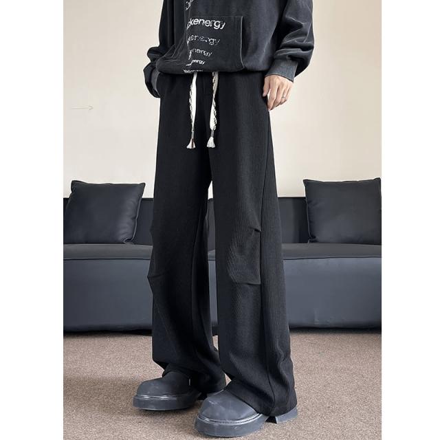 垂墜感日系褲子男 長褲男 M-5XL 肌理感褶皺垂感休閑褲男裝 寬松直筒休閑拖地褲 情侶長褲 休閒褲 原宿風褲子 復古 日系穿搭