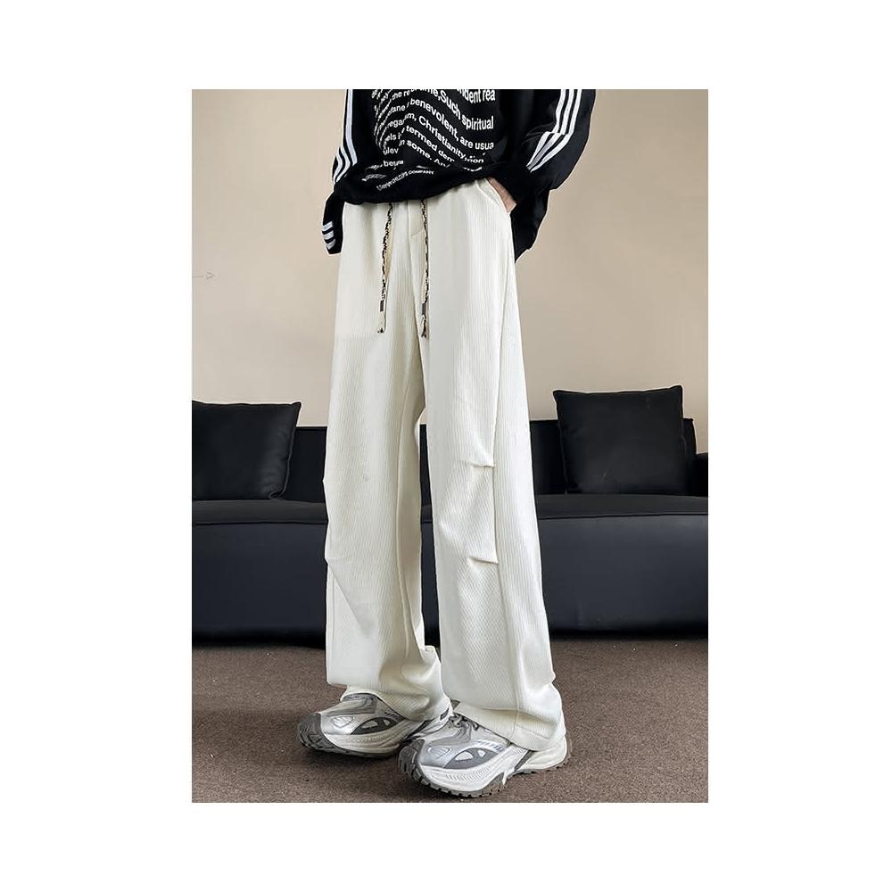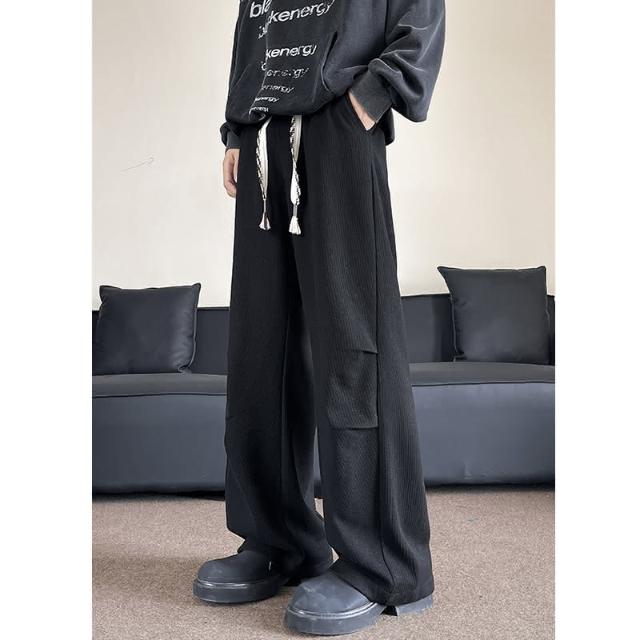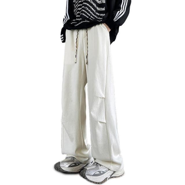 垂墜感日系褲子男 長褲男 M-5XL 肌理感褶皺垂感休閑褲男裝 寬松直筒休閑拖地褲 情侶長褲 休閒褲 原宿風褲子 復古 日系穿搭
