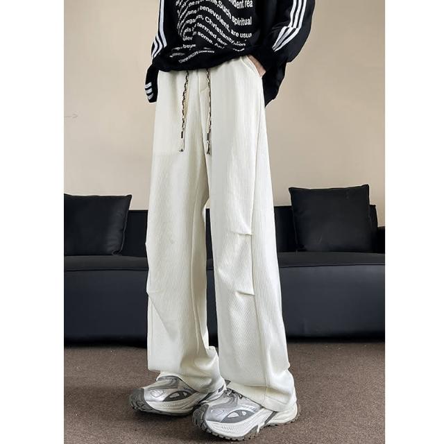 垂墜感日系褲子男 長褲男 M-5XL 肌理感褶皺垂感休閑褲男裝 寬松直筒休閑拖地褲 情侶長褲 休閒褲 原宿風褲子 復古 日系穿搭