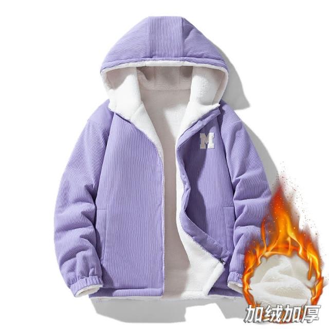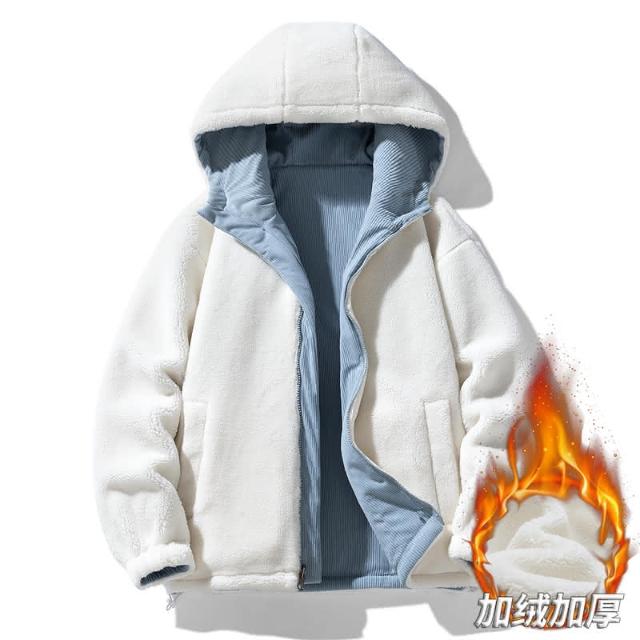 雙面穿羊羔絨夾克 男女同款 男寬鬆百搭上衣 加厚保暖連帽衫 冬季保暖外套男生 潮流禦寒外套 厚外套女 現貨加厚外套 連帽夾克外套
